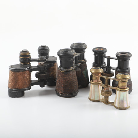 One lens cap missing to the Regent binoculars, caps missing to the Field binoculars, in used but good general condition.