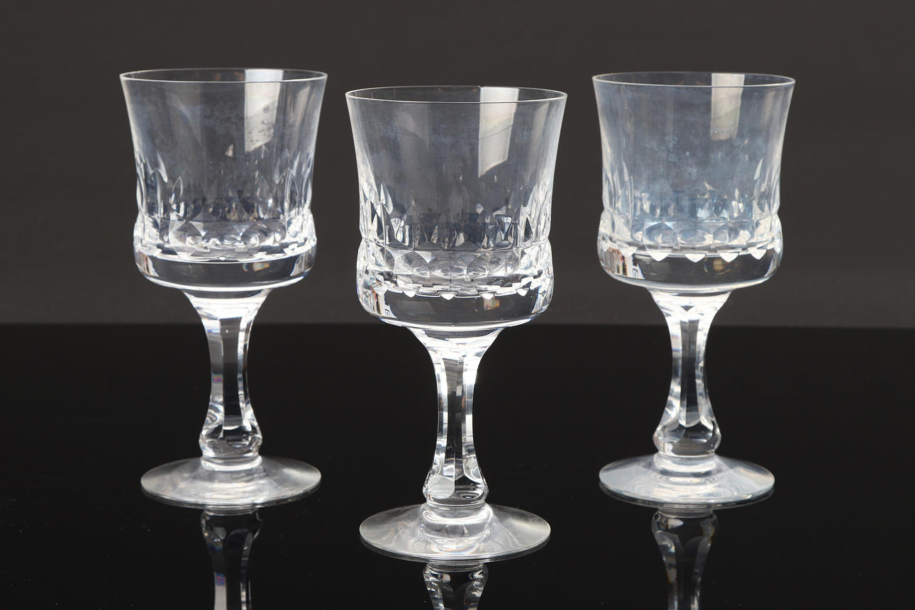 Consisting of: 12 shot glasses, 13.7 cm, 12 strong wine glasses, 10.5 cm and 12 wine glasses, 16 cm.