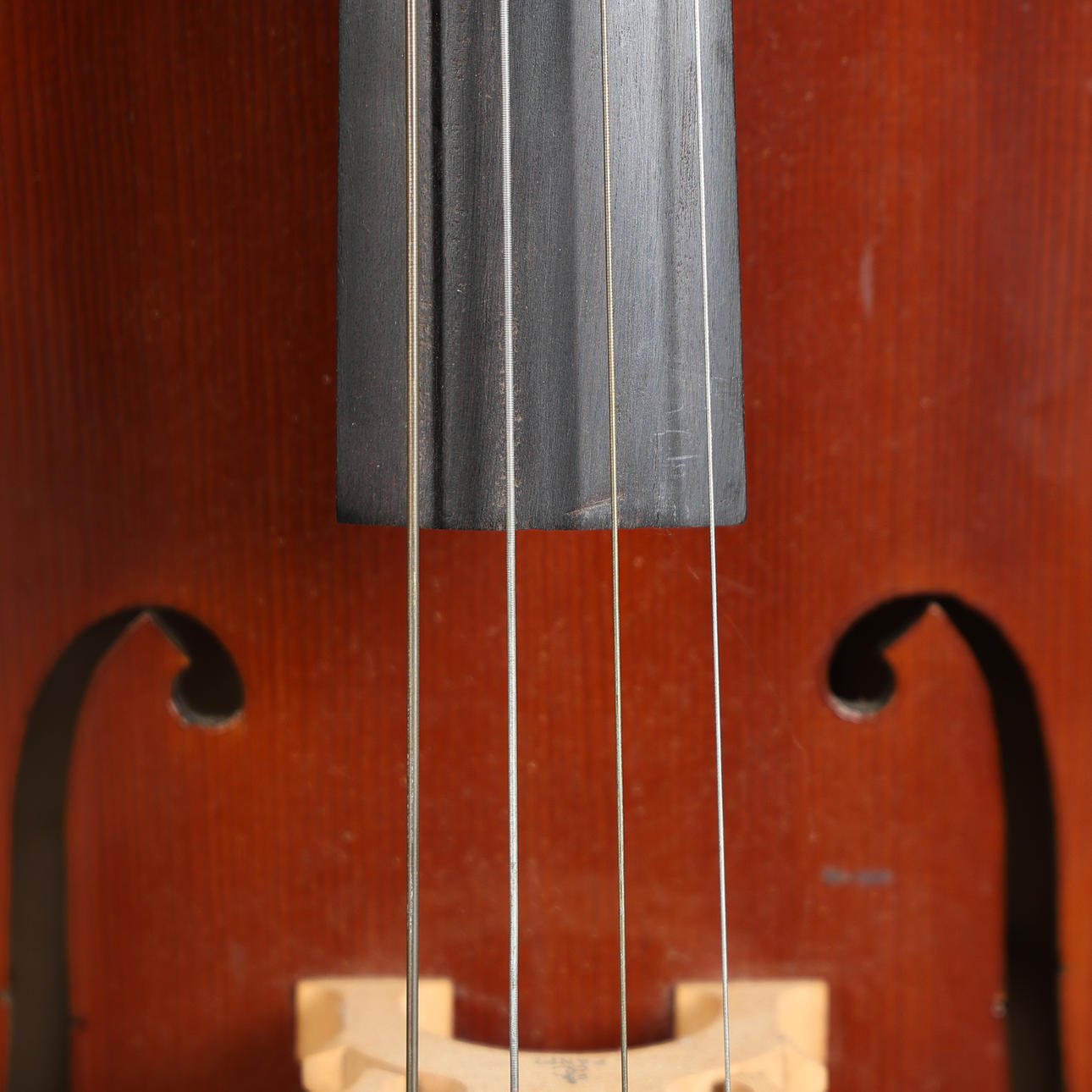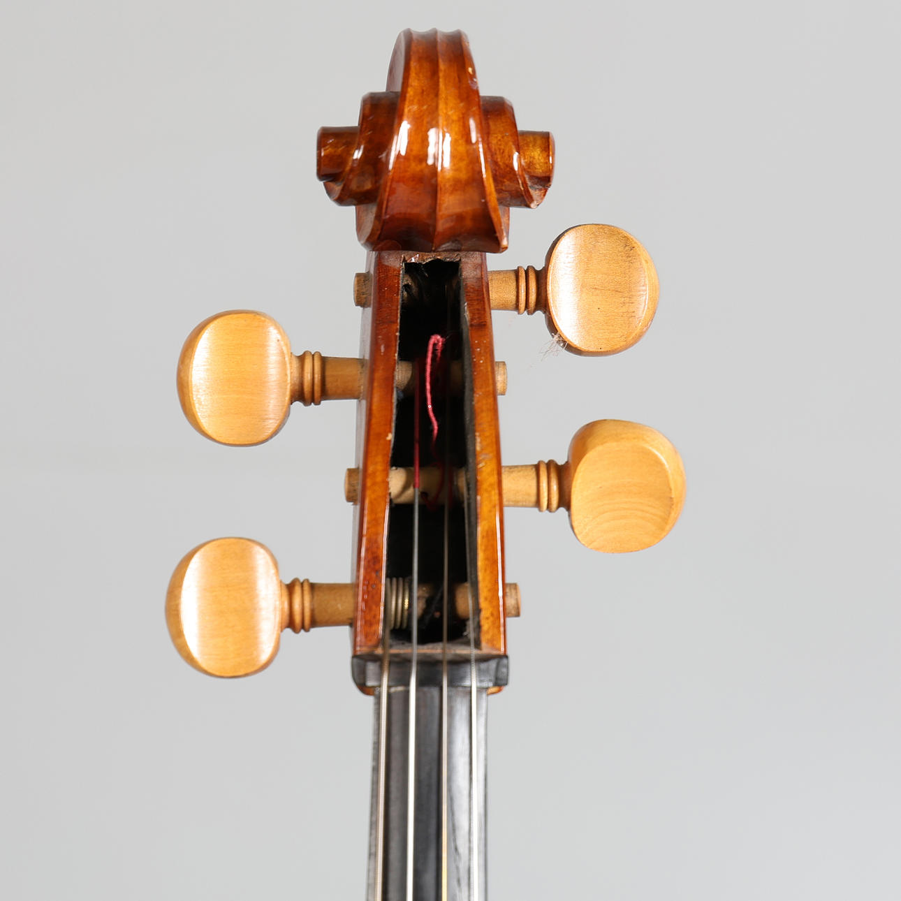 With marks and wear commensurate with age, looks to have had replacement tuning pegs, some dings and scuffs, bow with loose hairs.
