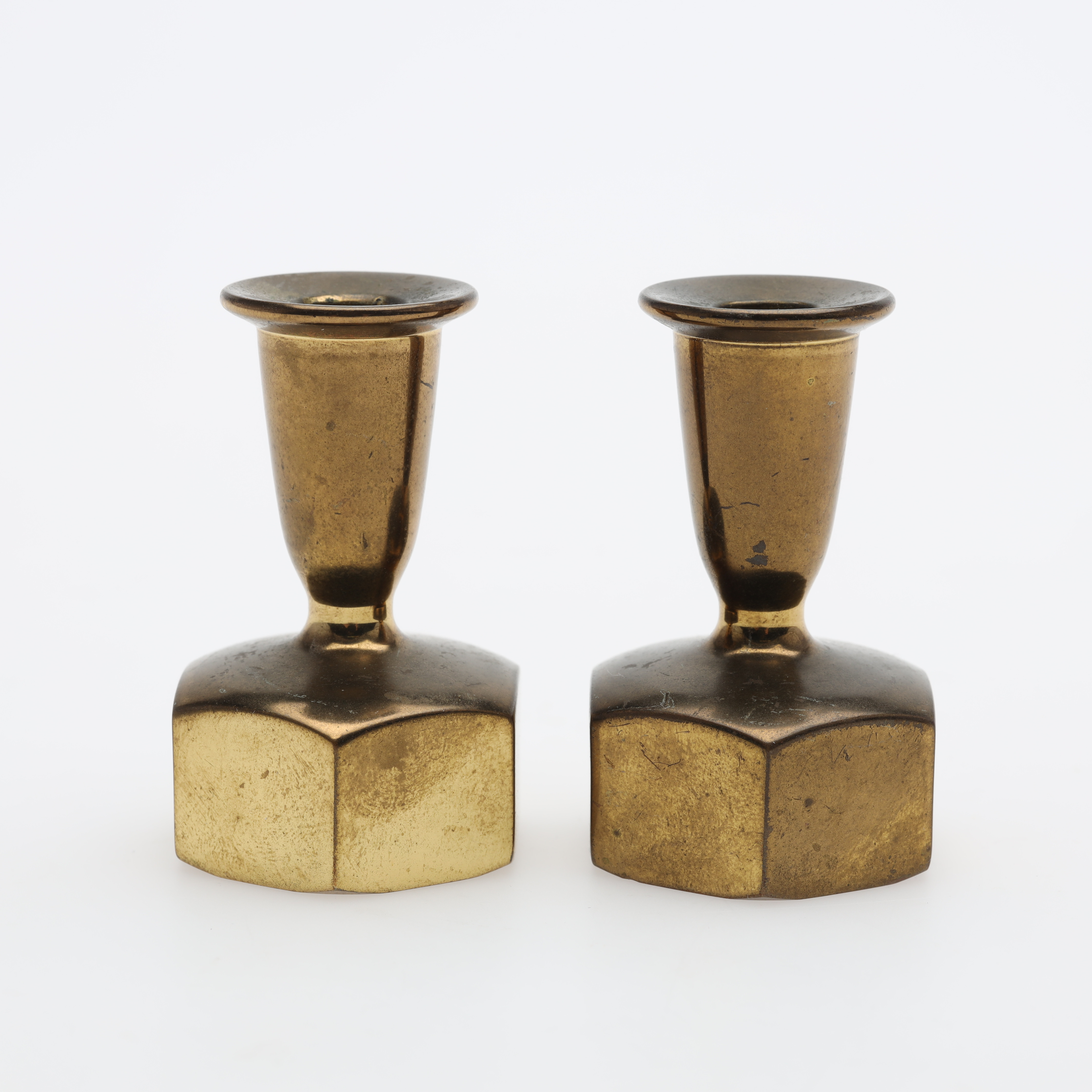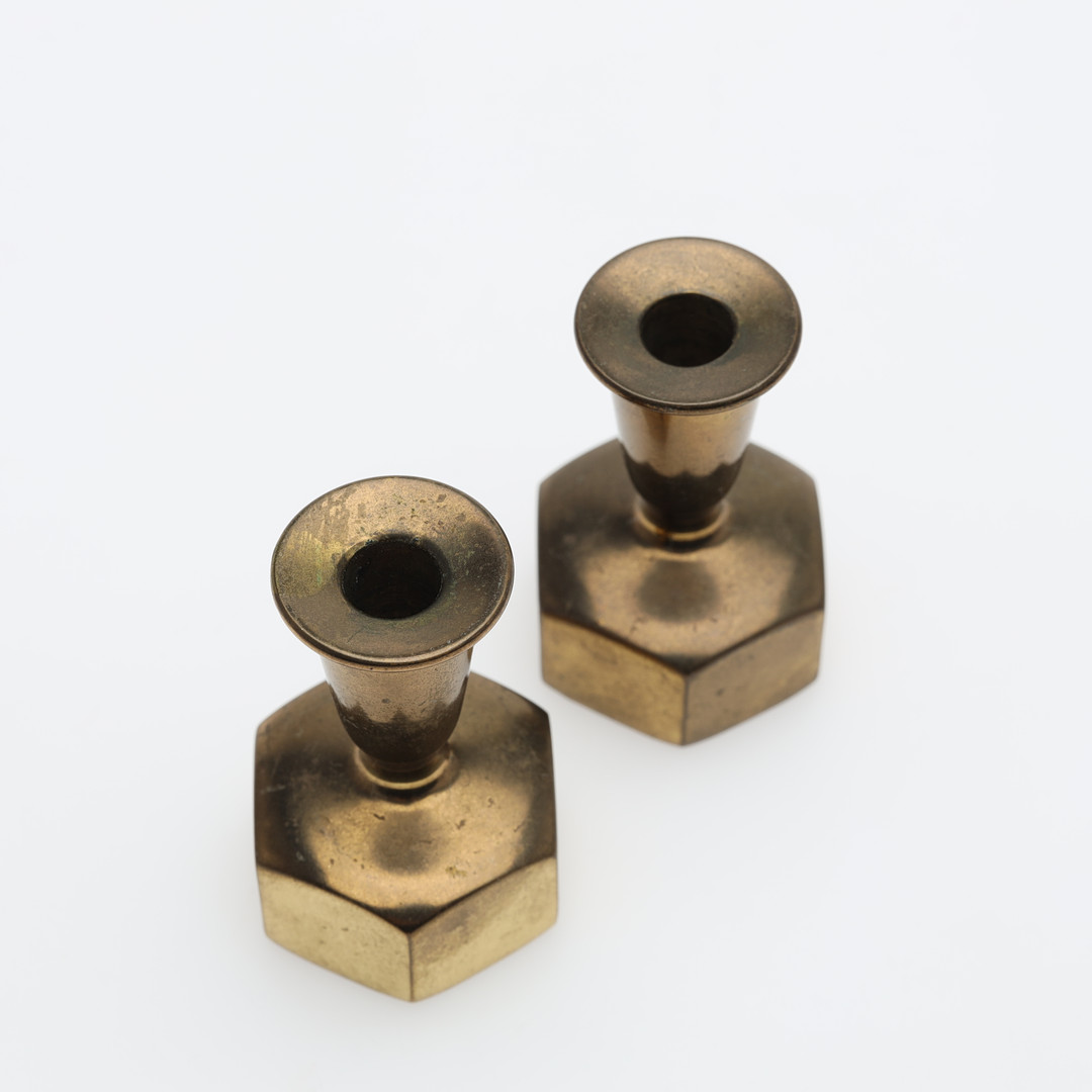 4313990. HANS-AGNE JAKOBSSON. A set of 2 candlesticks, brass, Markaryd.