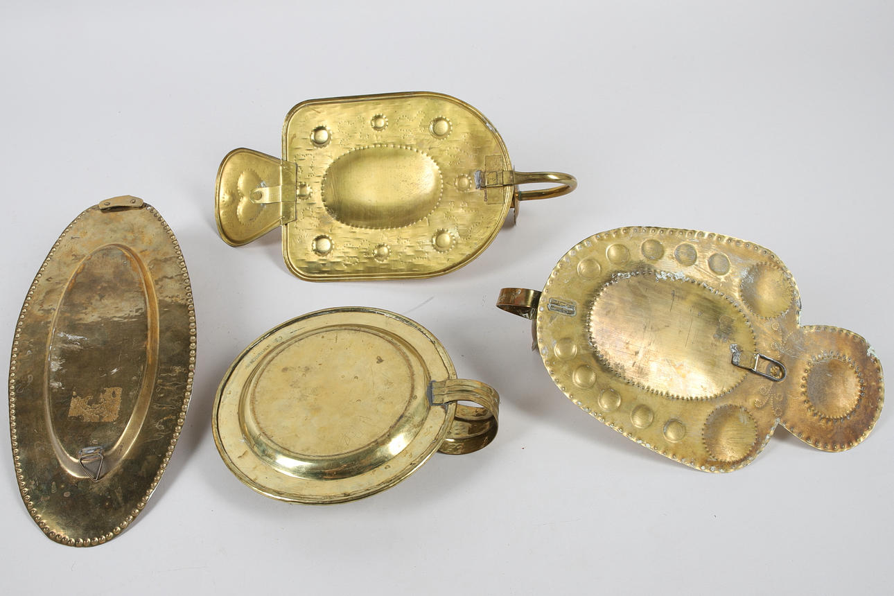 Wall plates, 3 pcs. dimensions approx: 32x18 cm. Candlestick, 1 pc. height approx: 5 cm, diameter approx: 19 cm.