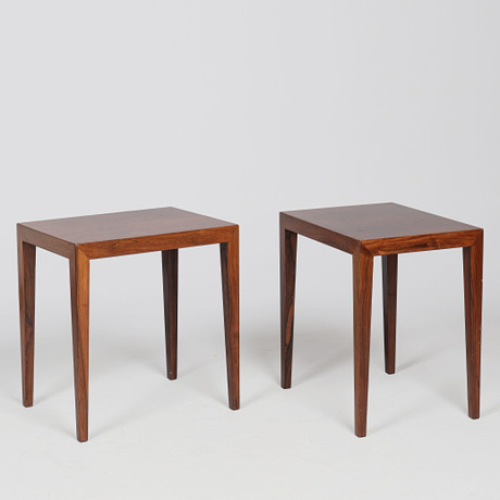 Piet Hein. Two rectangular dining tables/work tables with white laminate top and removable chrome-plated metal clamping legs.