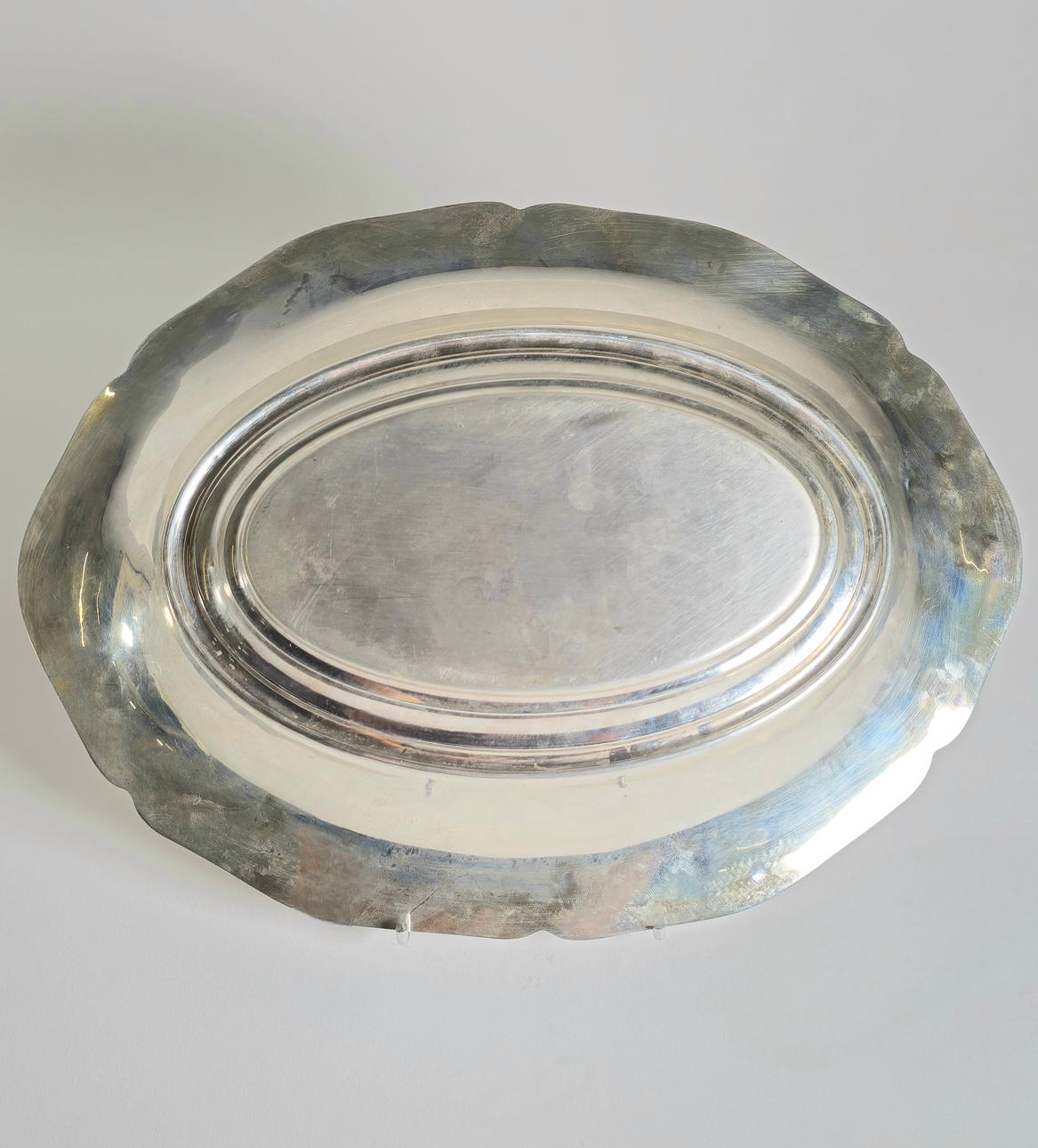 4315411. CENTER TABLE IN PUNCHED SILVER WITH VEGETABLE PERIMETER DECORATION.
