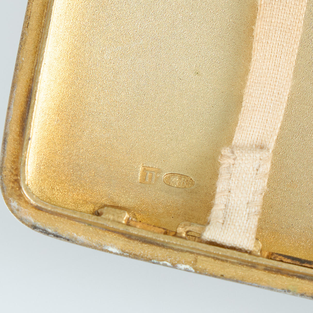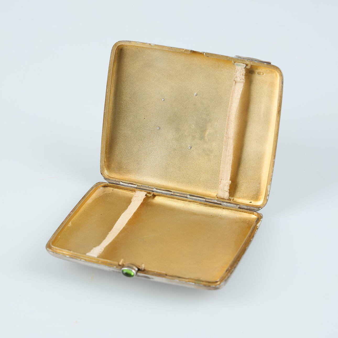 Decorated with monogram, inside gilded. Dimensions 10.5 x 8.5 cm. Weight circa 168 g.