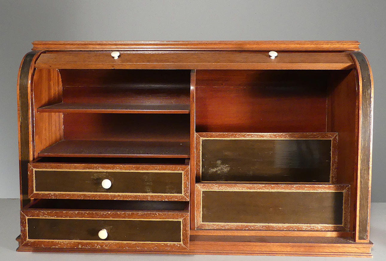 Roller shutter with rear compartments, shelves and drawers. Height approx. 32 cm, width 52 cm, depth 19,5 cm.