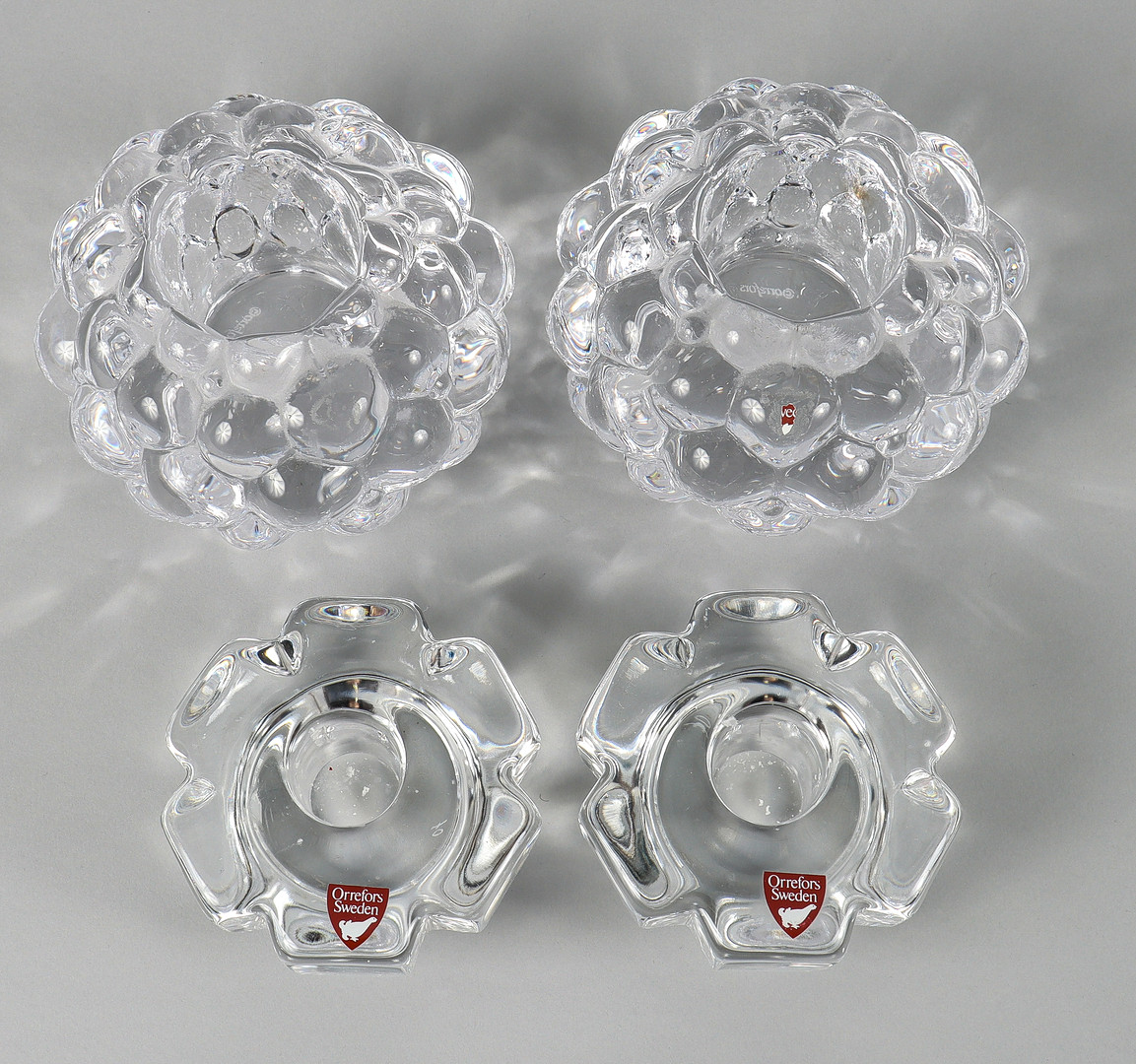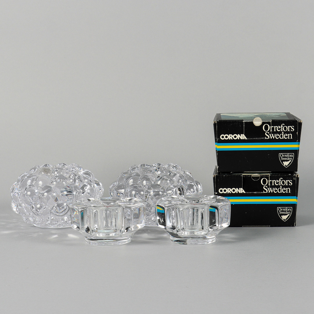 4317124. CANDLESTICKS 4 pieces, glass, Orrefors.
