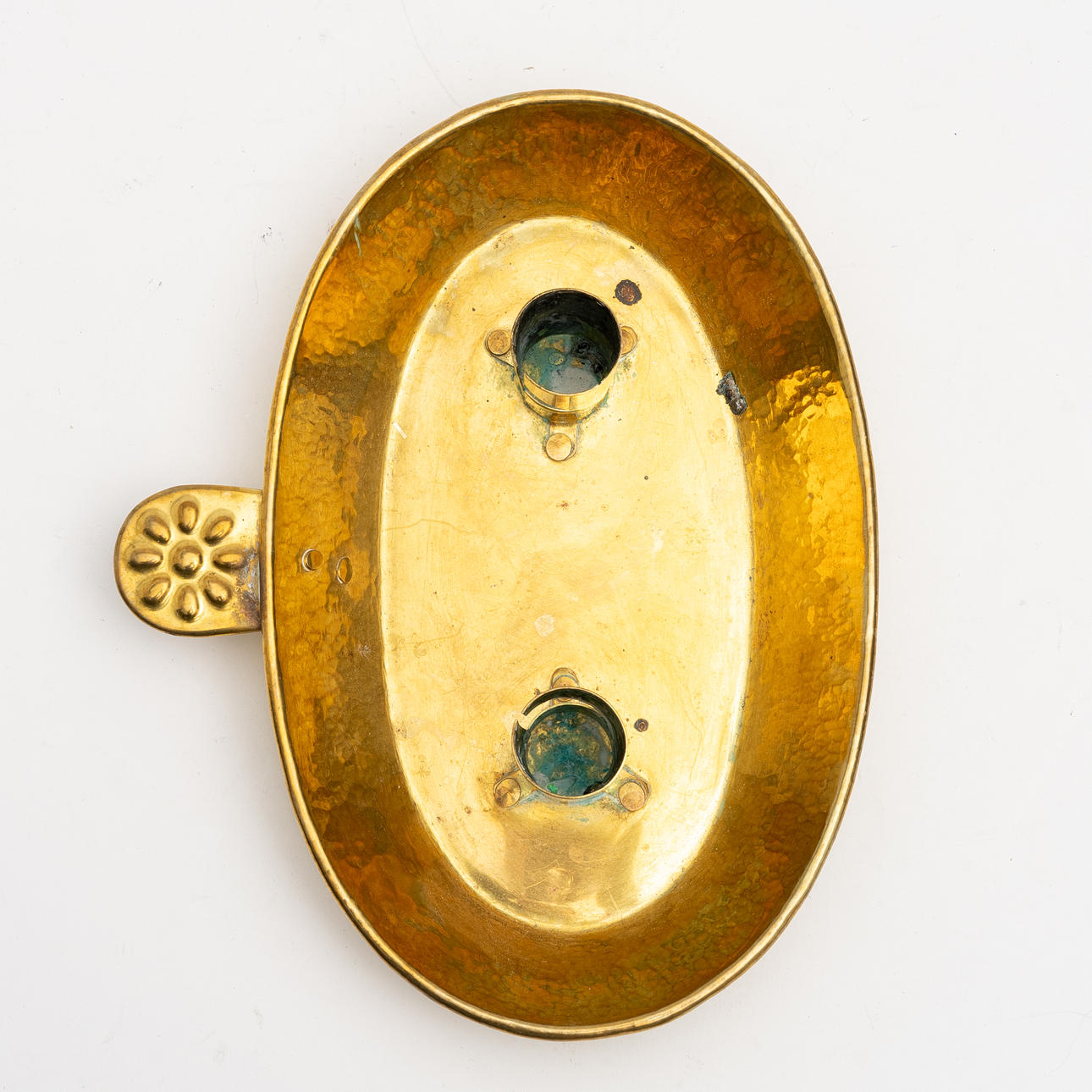 A double candlestick, brass, punctuated decor, 19th century.