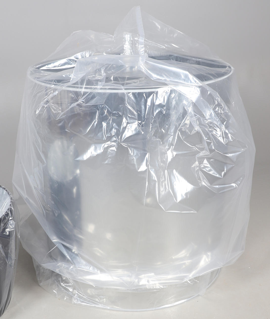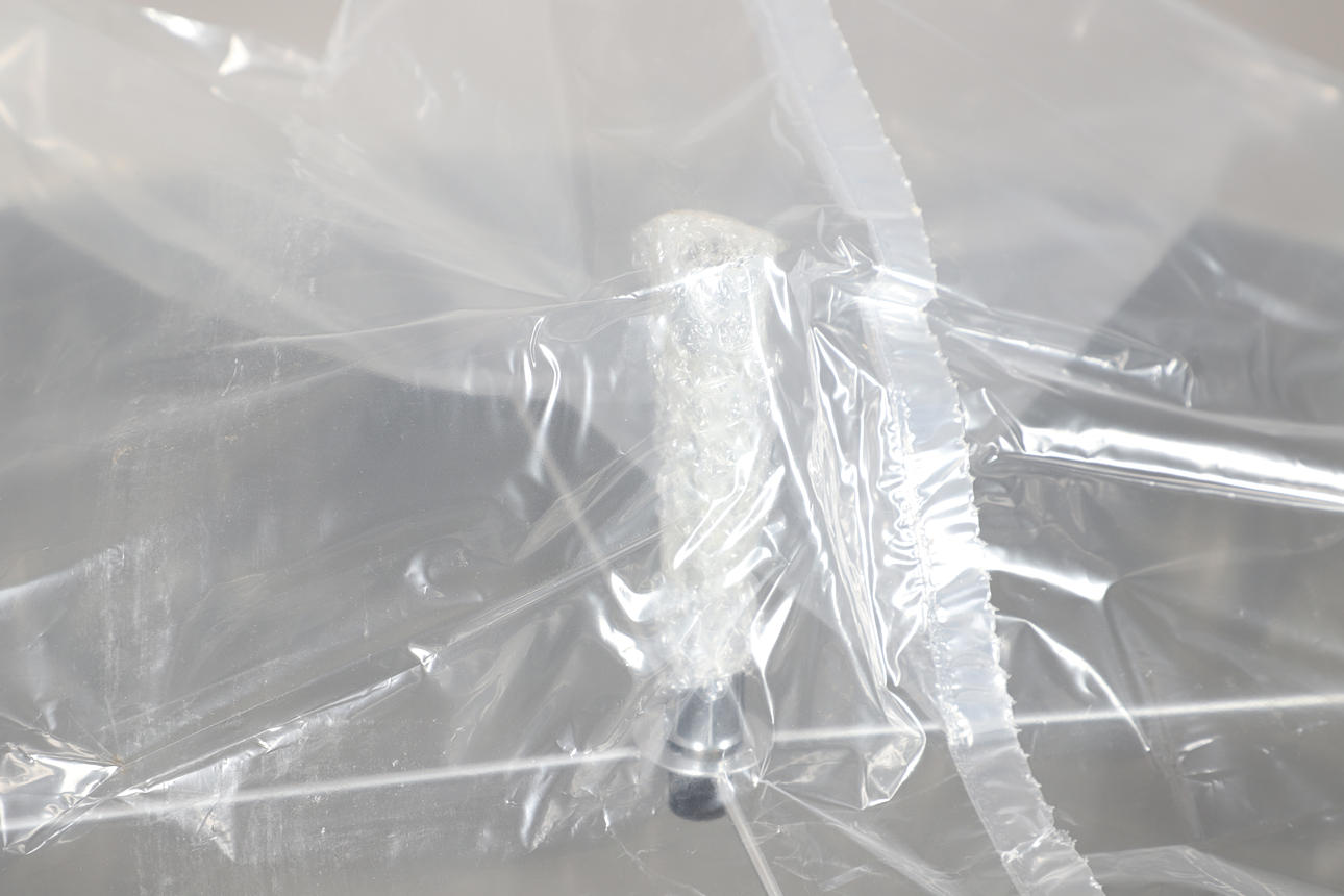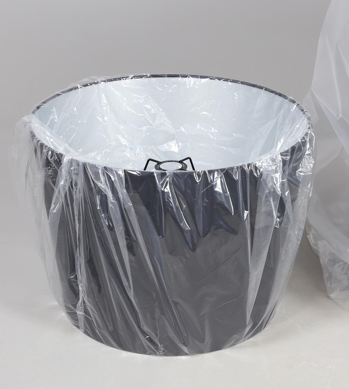 A very large clear lamp shade for use over a chandelier, designed by Jurgen Bey, unused and in it's original box. 69cms diameter, 78cms high. Box 74cms by 73cms, 83cms high. Also with a large shade, part of a Horse lamp (horse part missing), shade 41cms diameter, 39cms high (box 54cms by 52cms, 46cms high. (2).