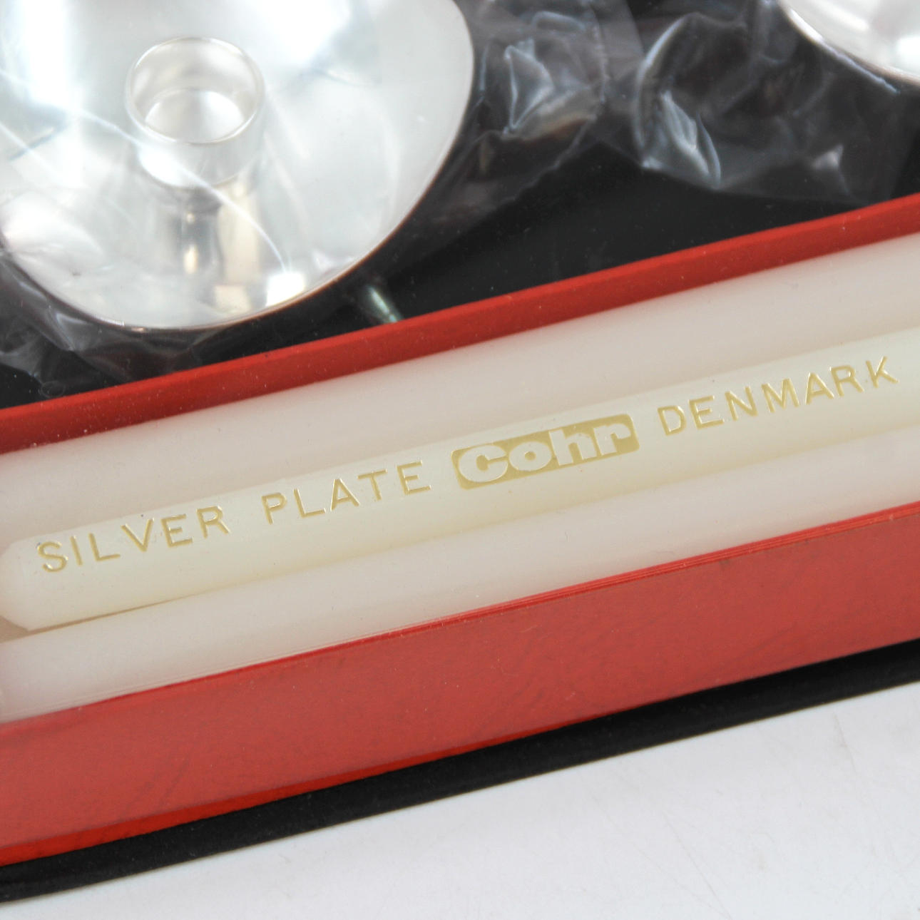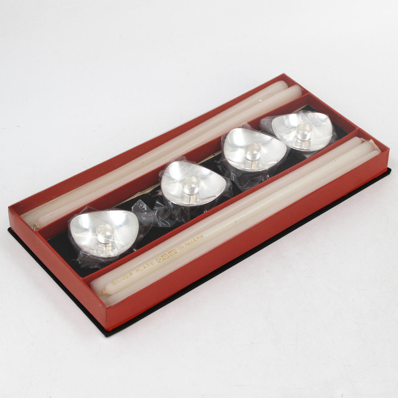 4318721. 4 CANDLESTICKS, NICKEL SILVER, COHR, DENMARK.