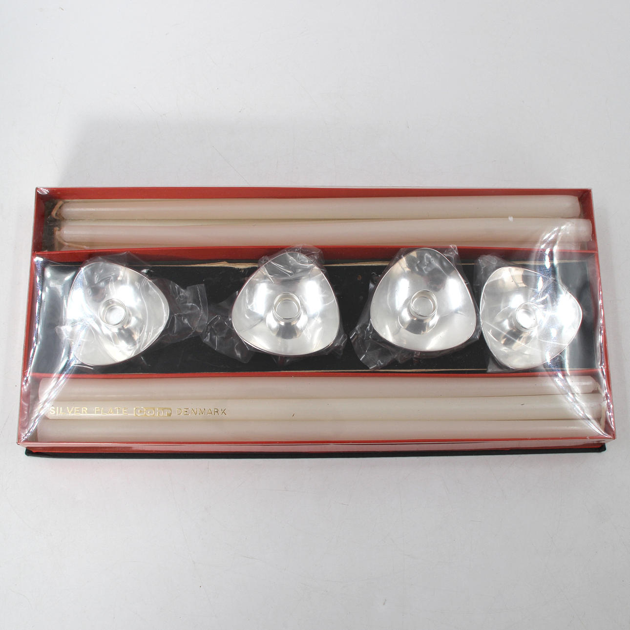 4 CANDLESTICKS, NICKEL SILVER, COHR, DENMARK.