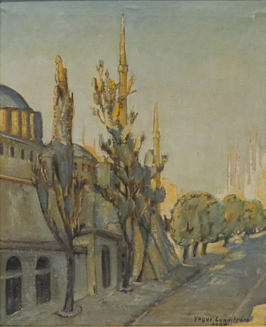 4319832. RUNE HAGBERG. Object, mixed media, roll behind glass, signed RH.