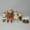 With heads of bisque porcelain, with shields, and bodies of cloth and leather respectively, arms of bisque porcelain and celluloid respectively, Germany, circa 1900, with mostly contemporary clothing, height 30, 35, 40 and 50 cm.