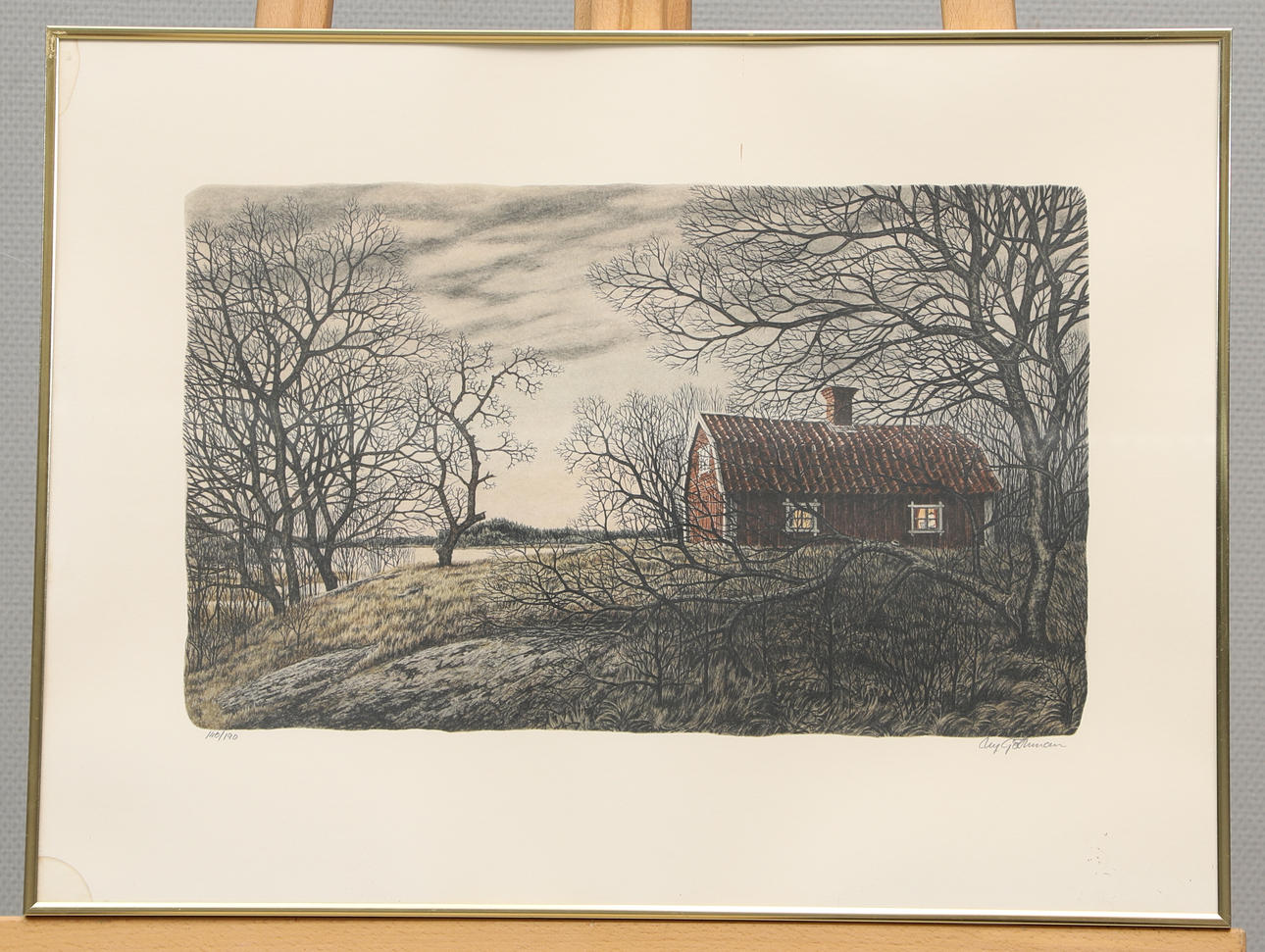 4320347. ULF GÖTHMAN. Lithograph, Cottage, Signed.