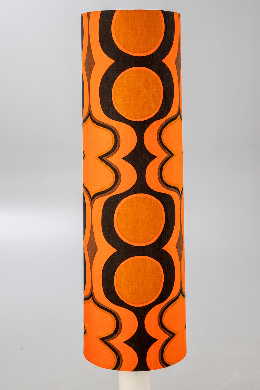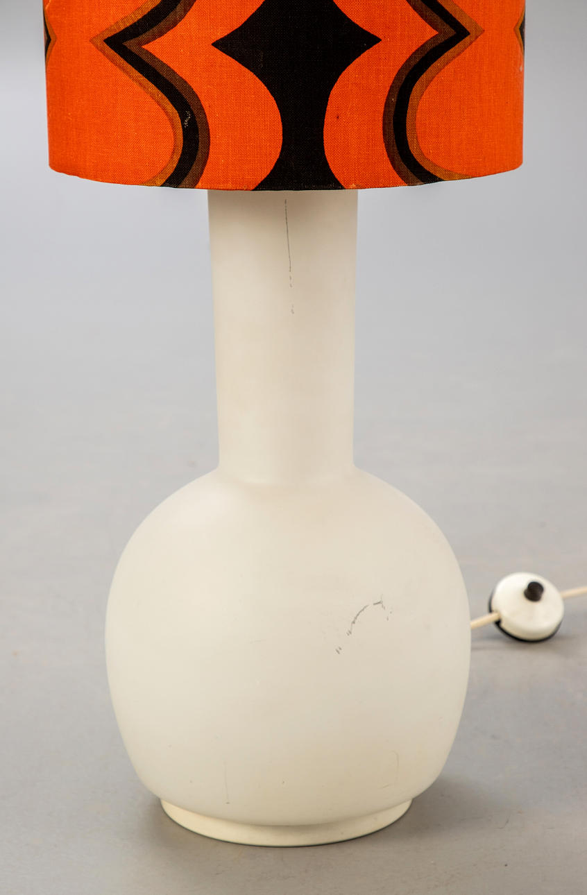 Floor lamp with satined glass base in white. textile lampshade H. ca. 138 cm x diameter 28 cm.