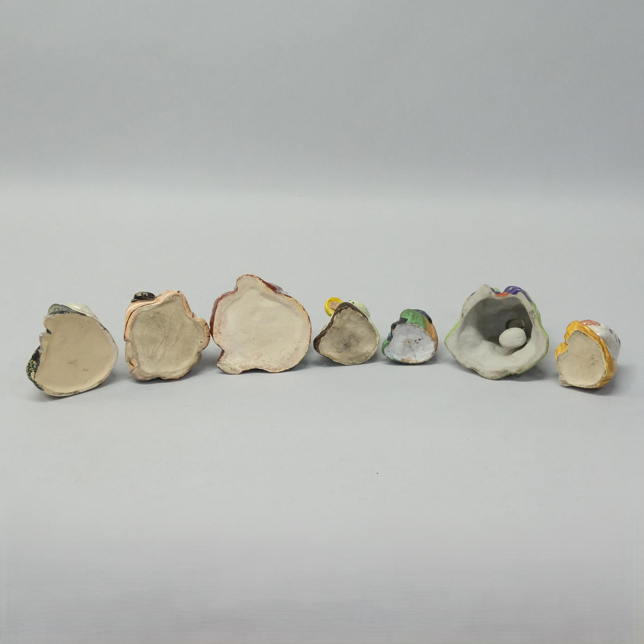 Around 1900. Height 7, 8.5, 8.5, 9, 10, 11 and 13 cm.