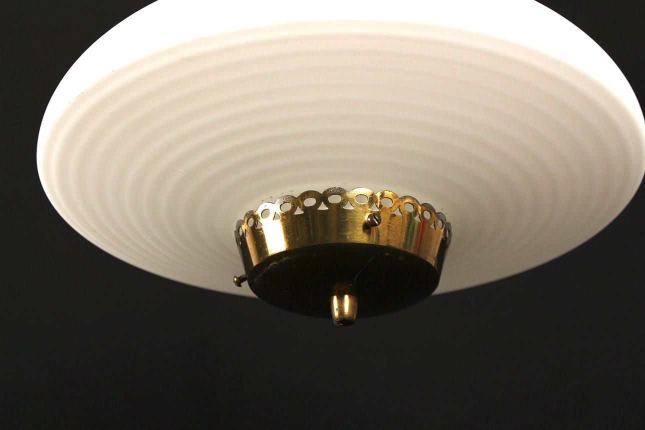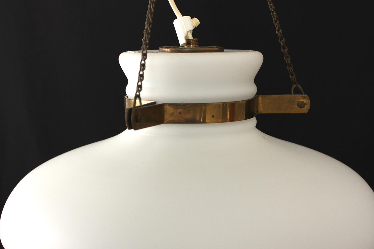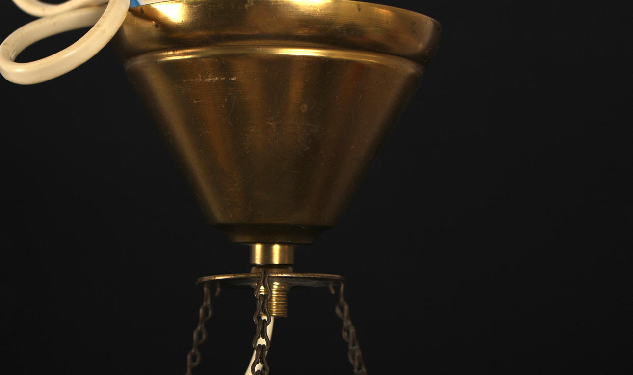 4320822. CEILING LAMP with chains white opaline cup and brass.