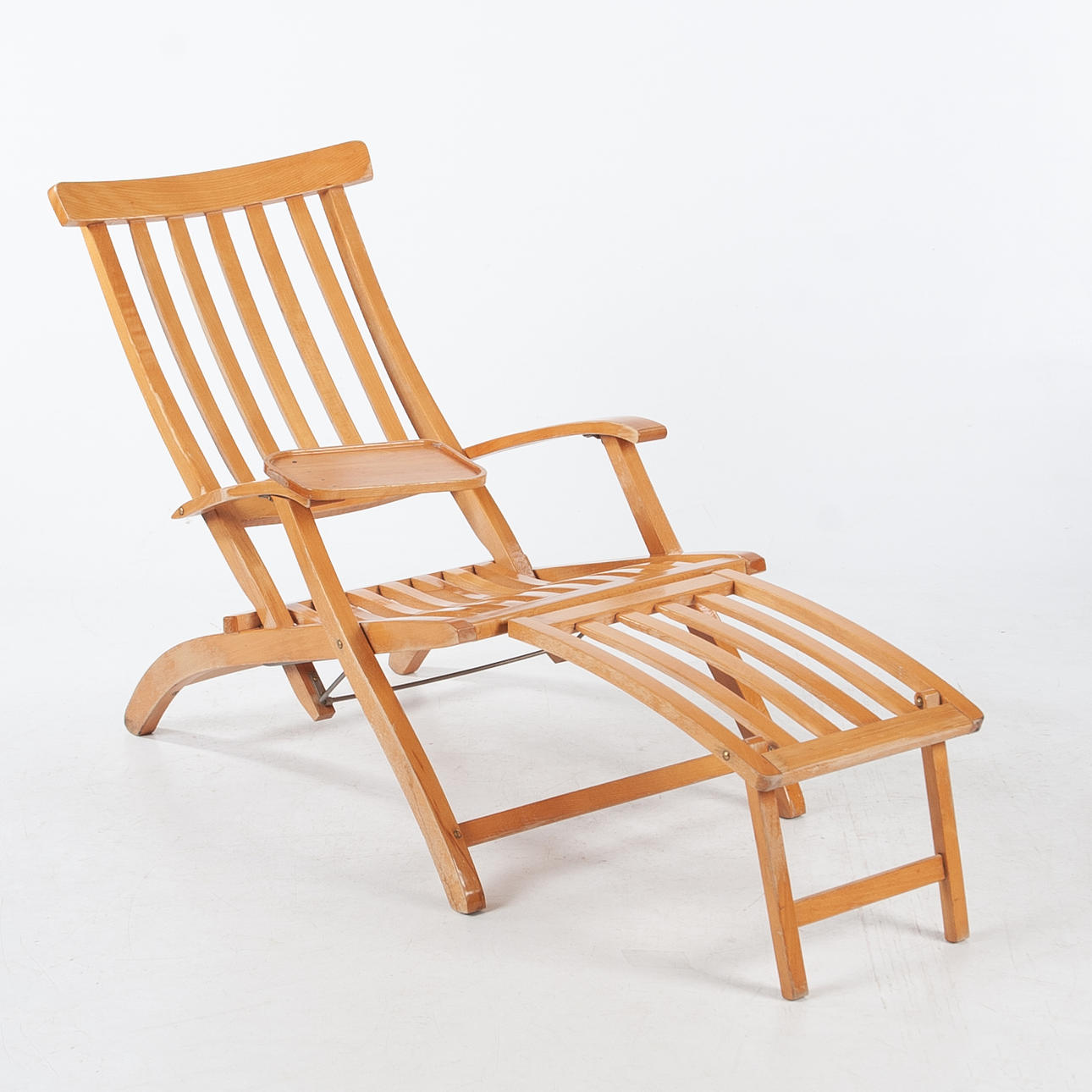 Book. Foldable with fold-out footstool. On one armrest loose tray. Width 60 cm. Maximum length c. 145 cm. Folded length 120 cm.