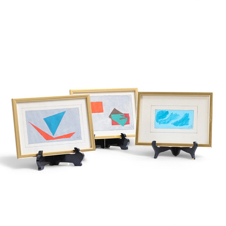 FRANK ARNESSON. MIXED MEDIA, TWO PCS. Compositions. Signed.