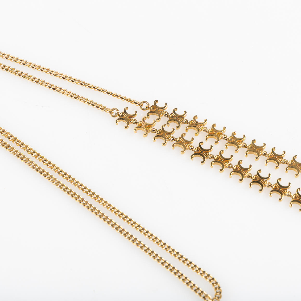 Chain with Triomphe links in brass. Tagged CELINE PARIS, MADE IN ITALY, USM 0232. Box, dustbag, tag and material guide included. Length approx. 77 cm.