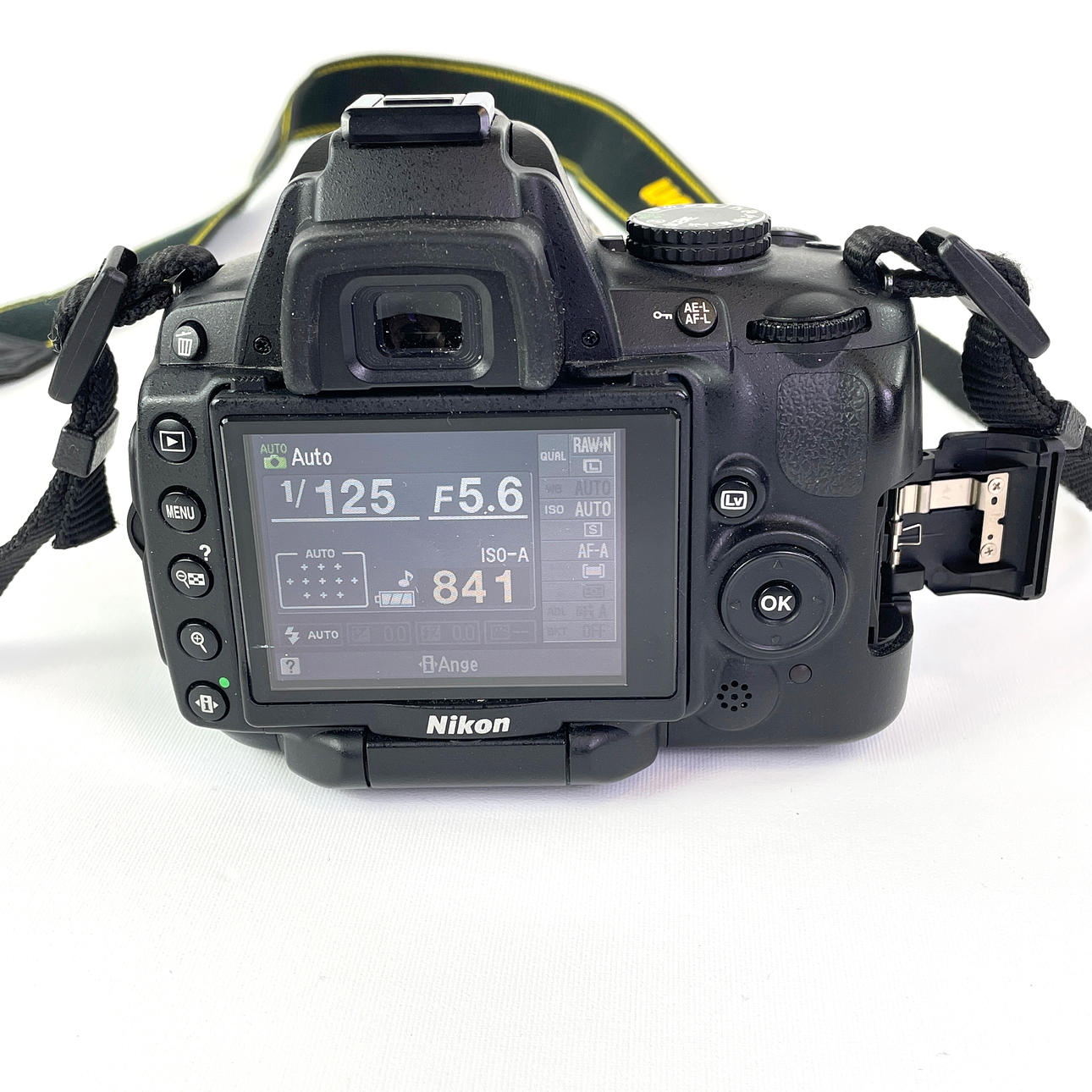 CAMERA, Nikon D5000 with lens and case.