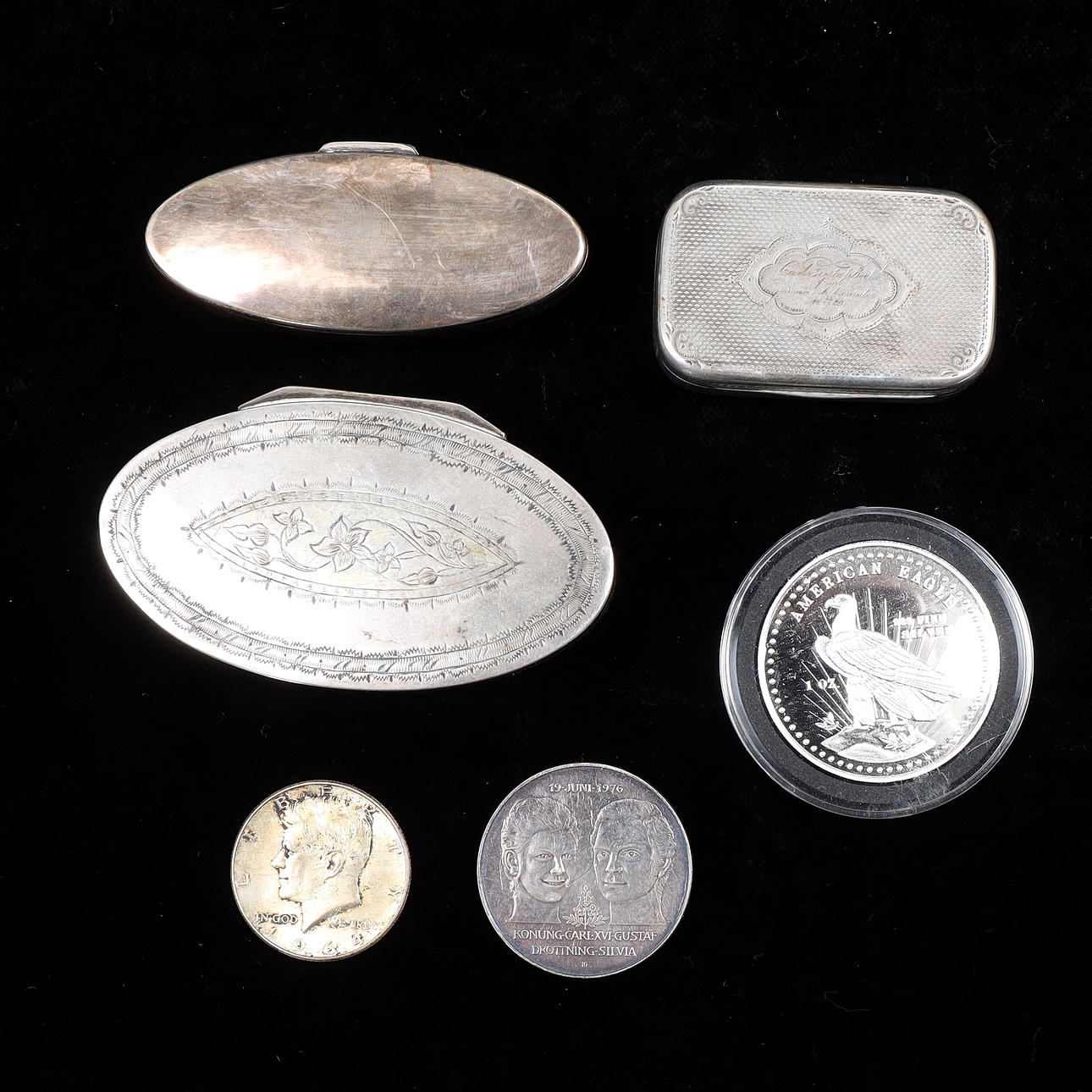 SILVER OBJECTS, 7 pcs, silver, weight 284 gram.