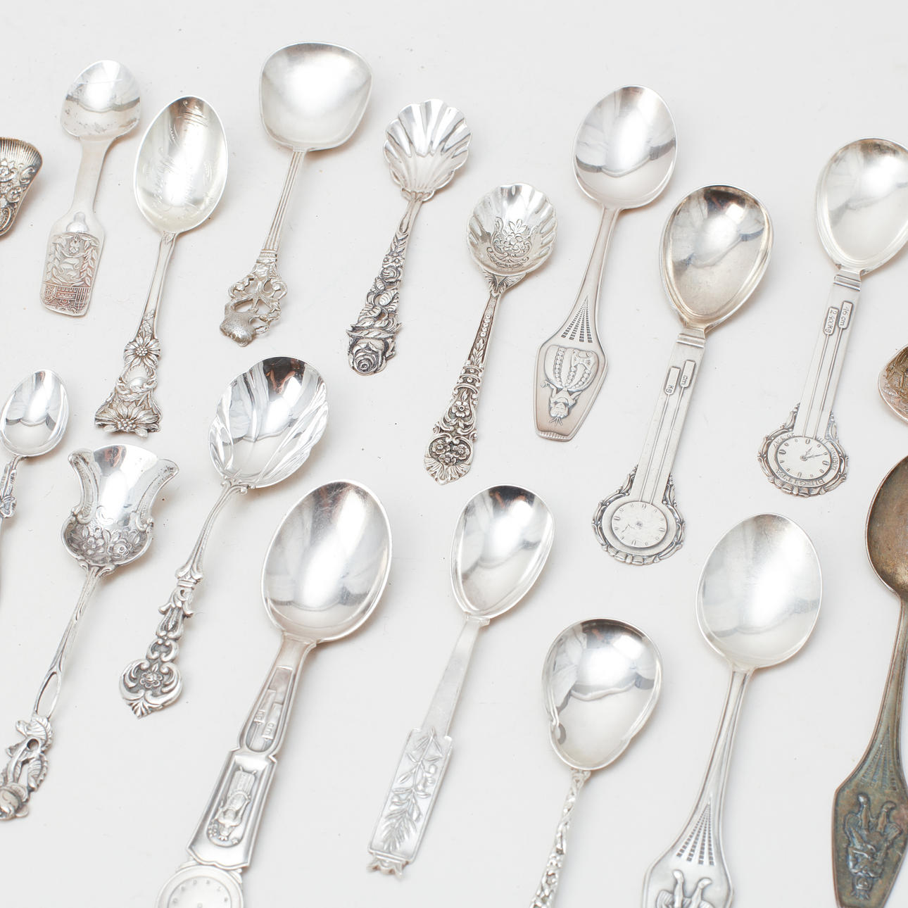 Different spoons, length about 10 - 15 cm.