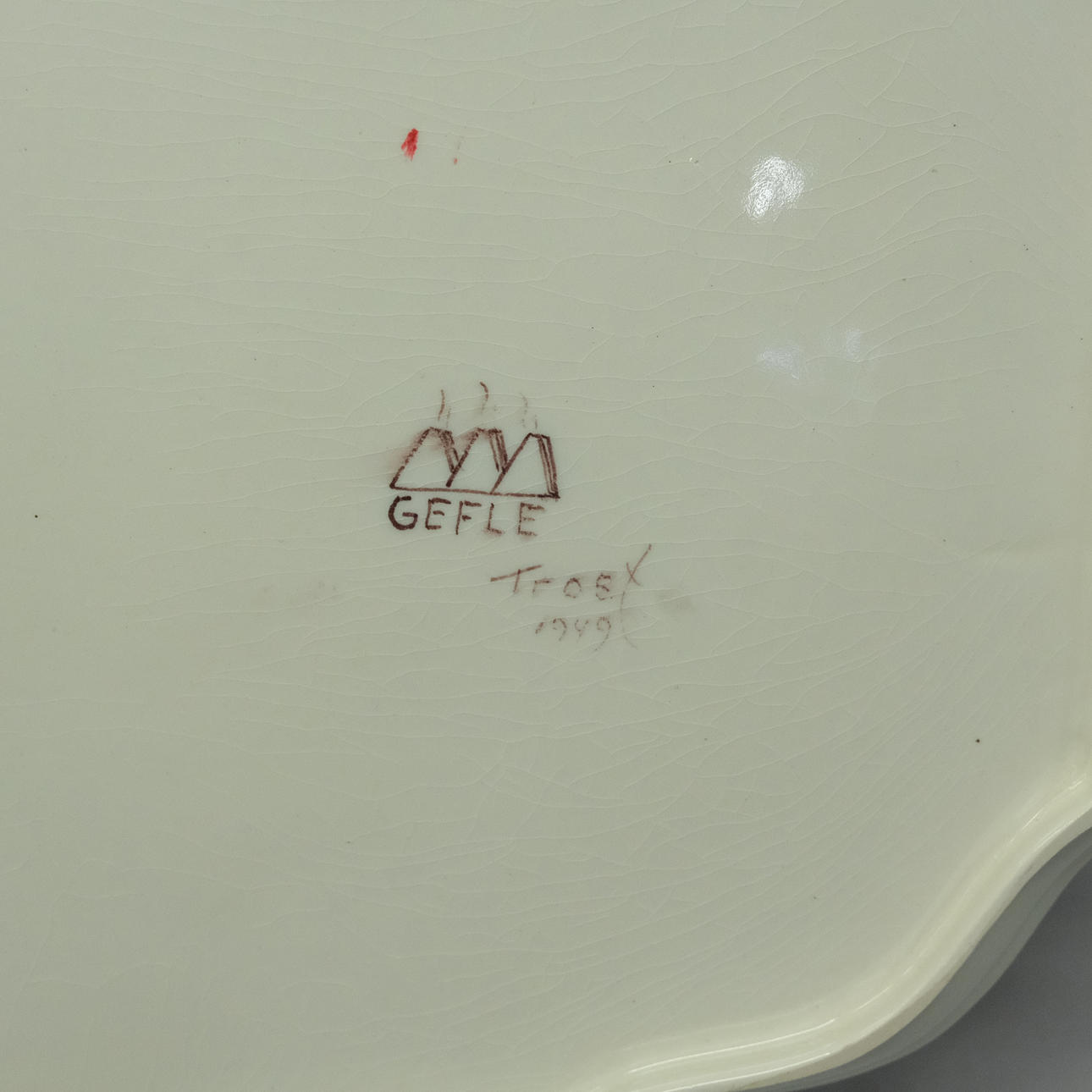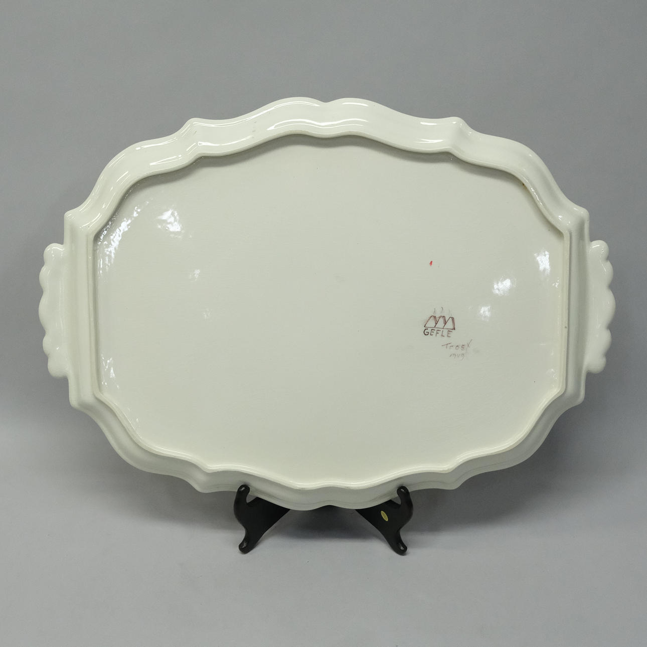 Dish with handle, length 51cm, width 37cm, marked Gefle Trost 1949.