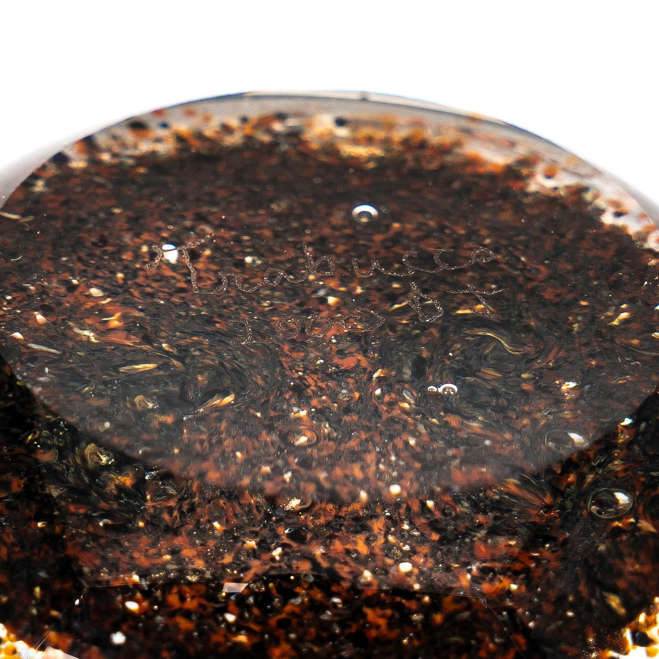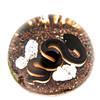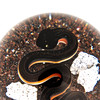 Paperweight/glass letterpress depicting a sculpted snake with white stones against a gravel base