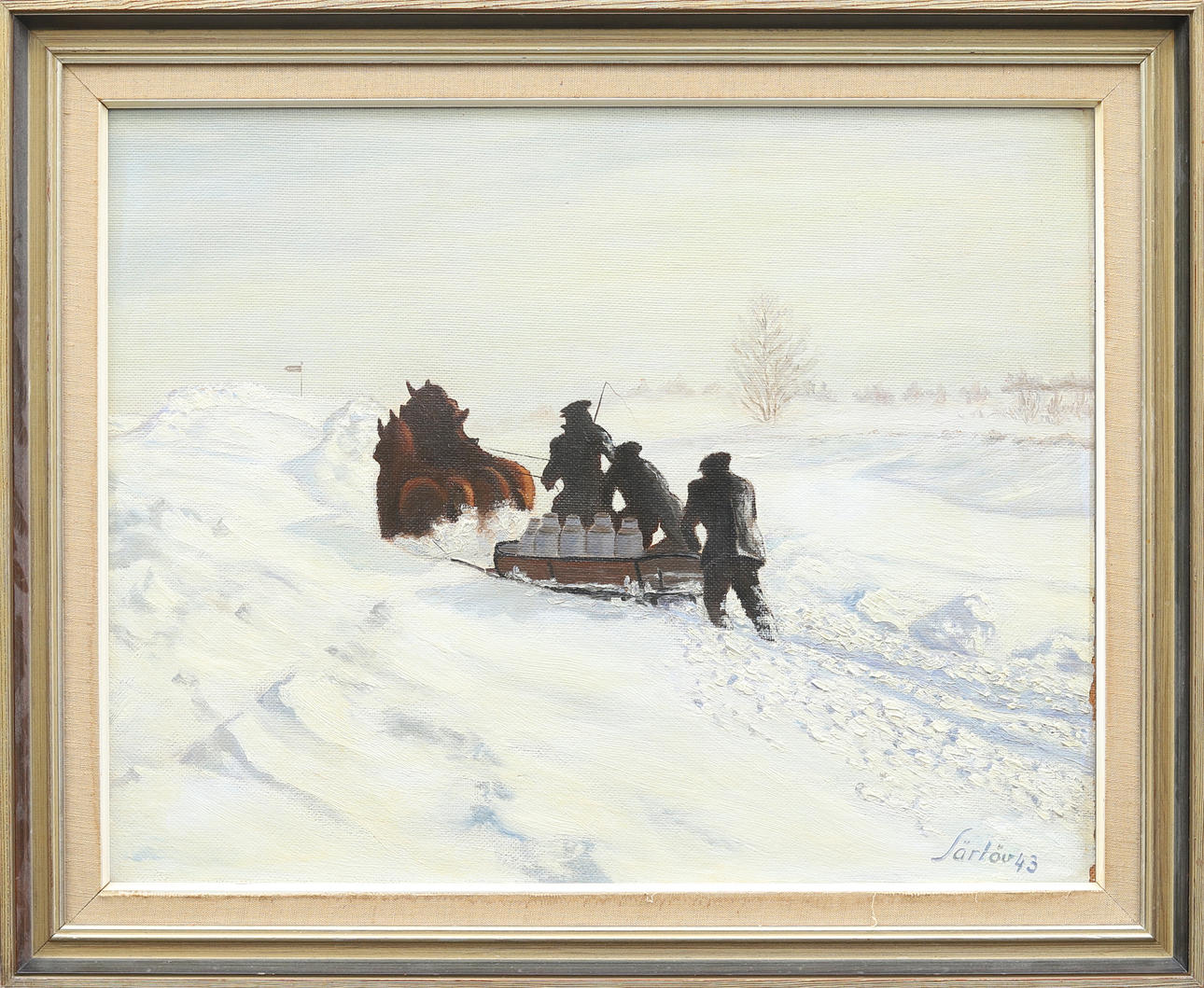 4323005. MALTE SÄRLÖV. “Skånsk winter”, oil on panel, signed and dated -43.