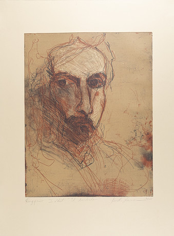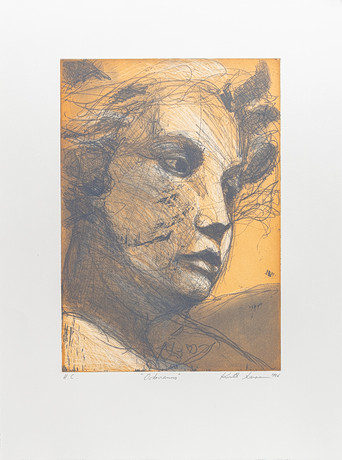 BATTE SAHLIN. Lithograph in colour, “On the beach”, signed and numbered 40/66. Oramat leaf.