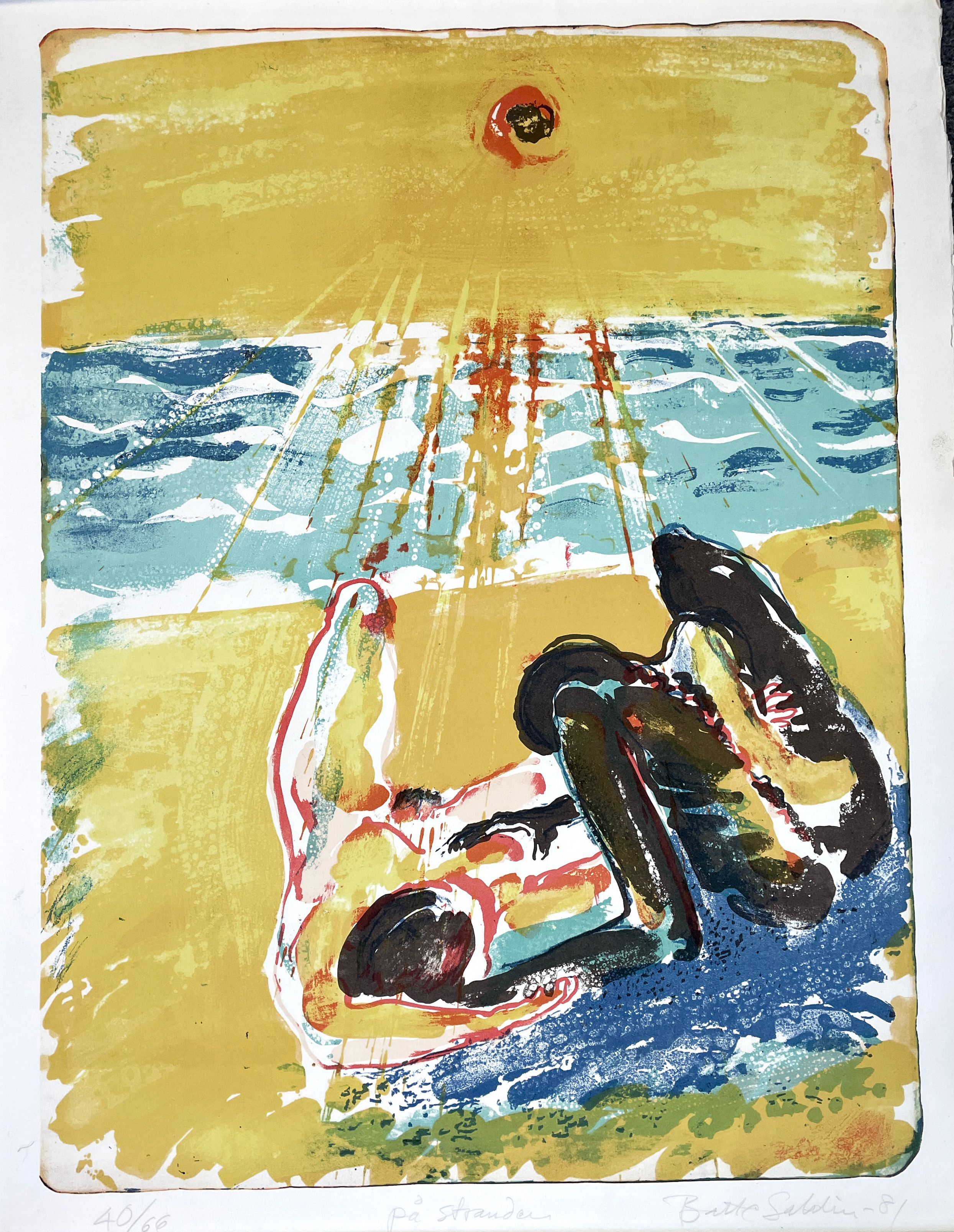 4323122. BATTE SAHLIN. Lithograph in colour, “On the beach”, signed and numbered 40/66. Oramat leaf.