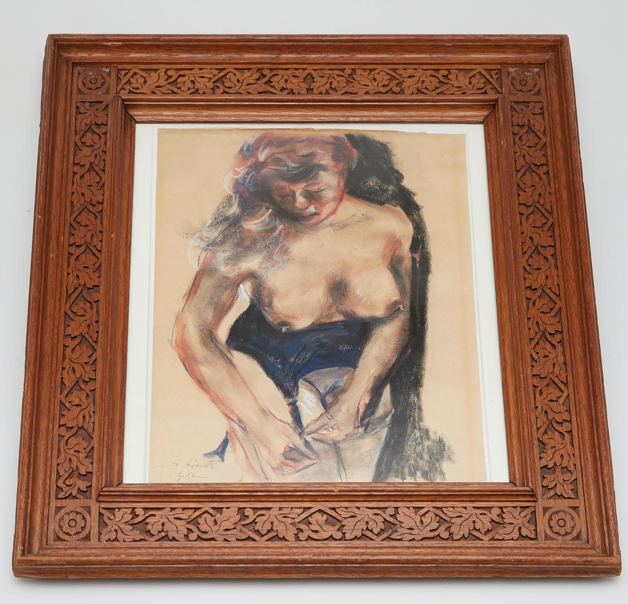 Lovis Corinth (1858-1925), 'Dressing female half-act', pastel on paper, ca. 1905-1910, signed and illegibly inscribed at the bottom left, ca. 44 x 34.5 cm, framed behind passe-partout and glass, with frame ca. 66.5 x 60 cm