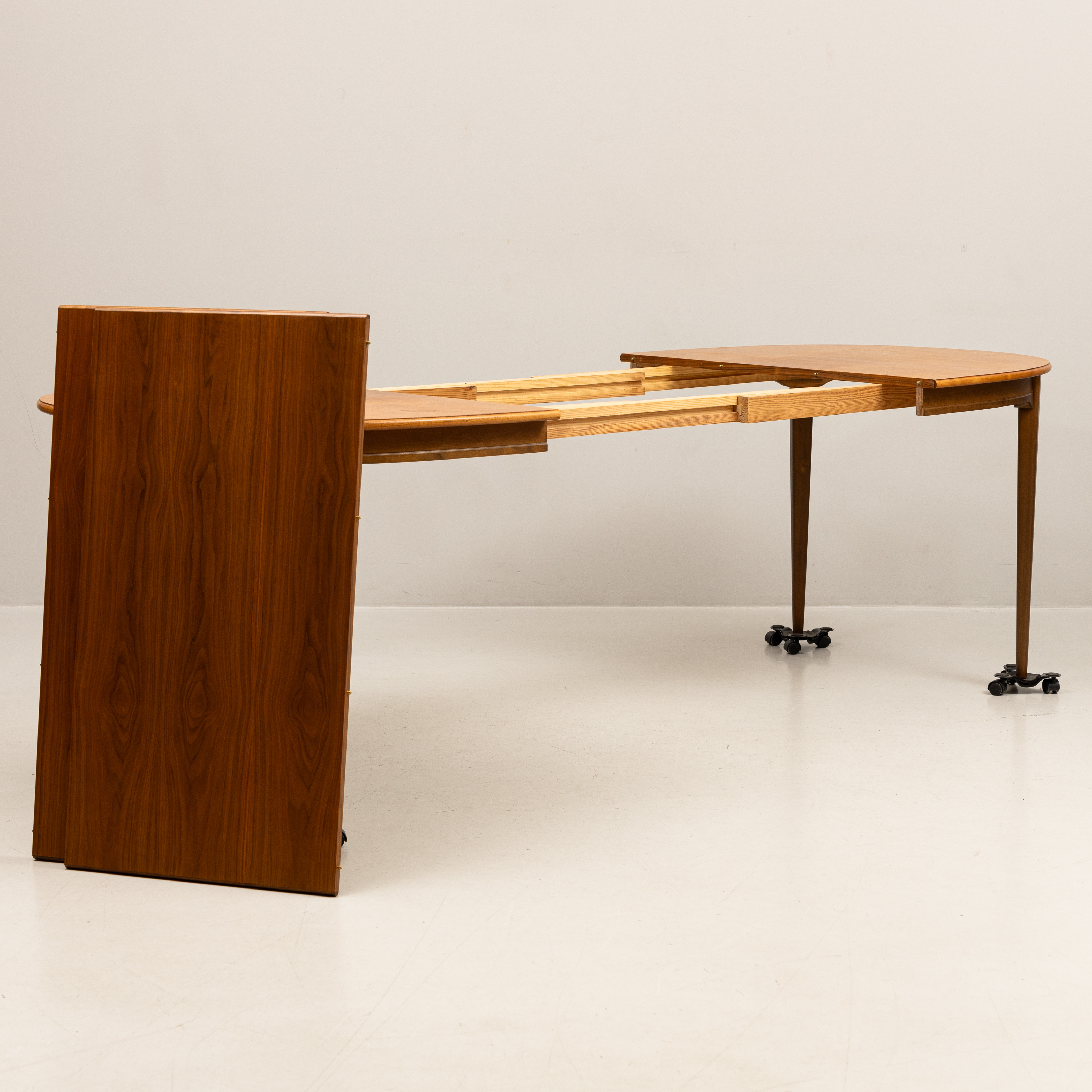4323628. SVANTE SKOGH. Dining table, “Vindö”, walnut, with two inserts, Möbelfabriken Balder, Vaggeryd. 1950s/60s.