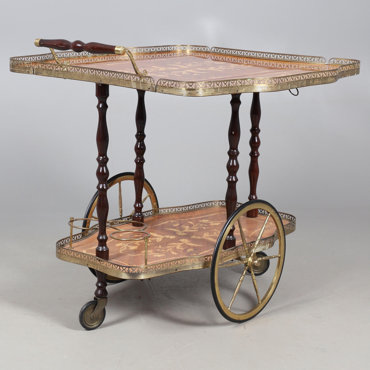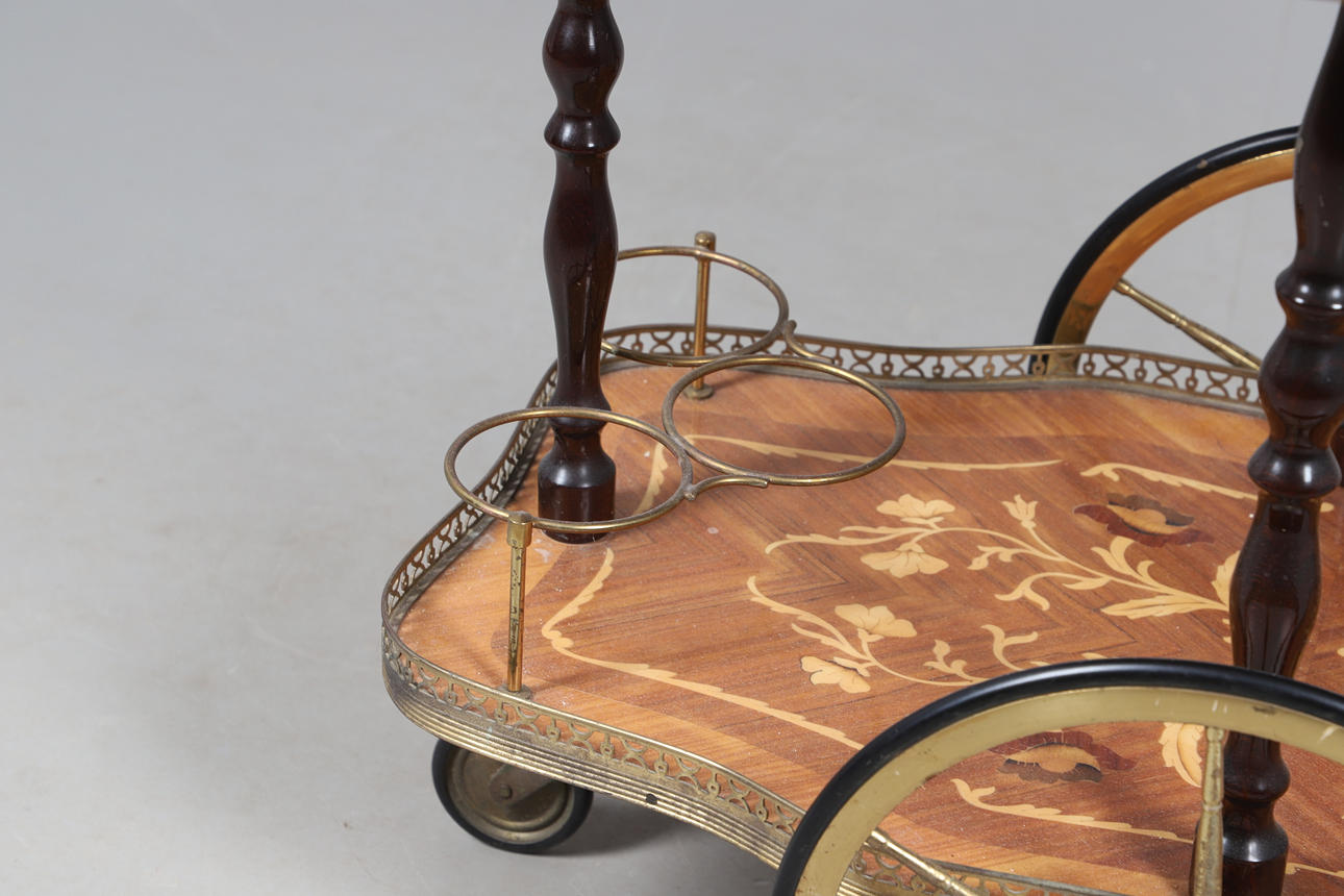 4324611. AN INLAID TWO TIER DRINKS TROLLEY.