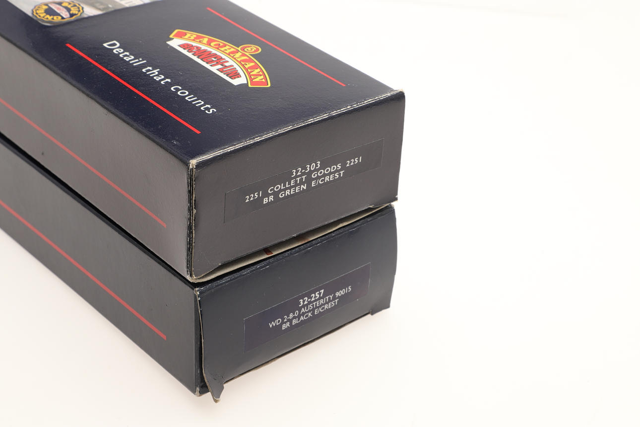 Two boxed locomotives including 32-257 Austerity 90015, and 32-303 2251 Collett GoodsBoxes 34cms by 9cms. (2).