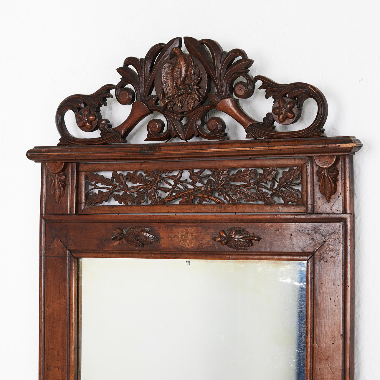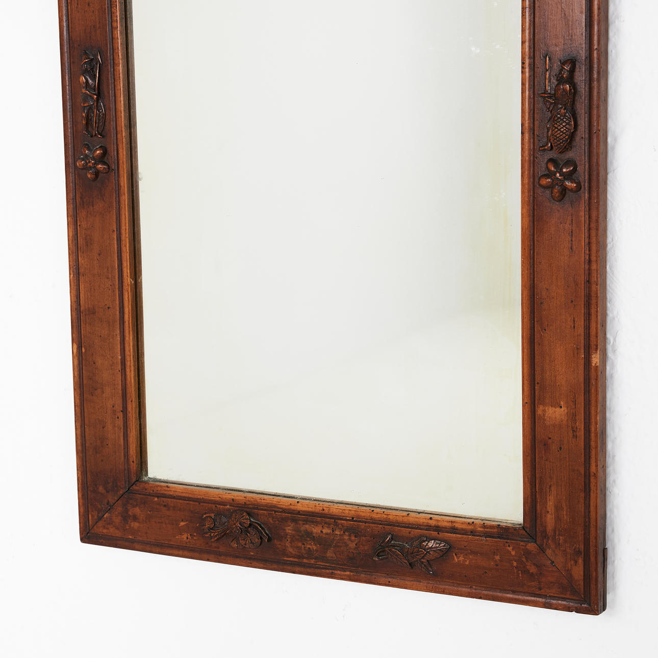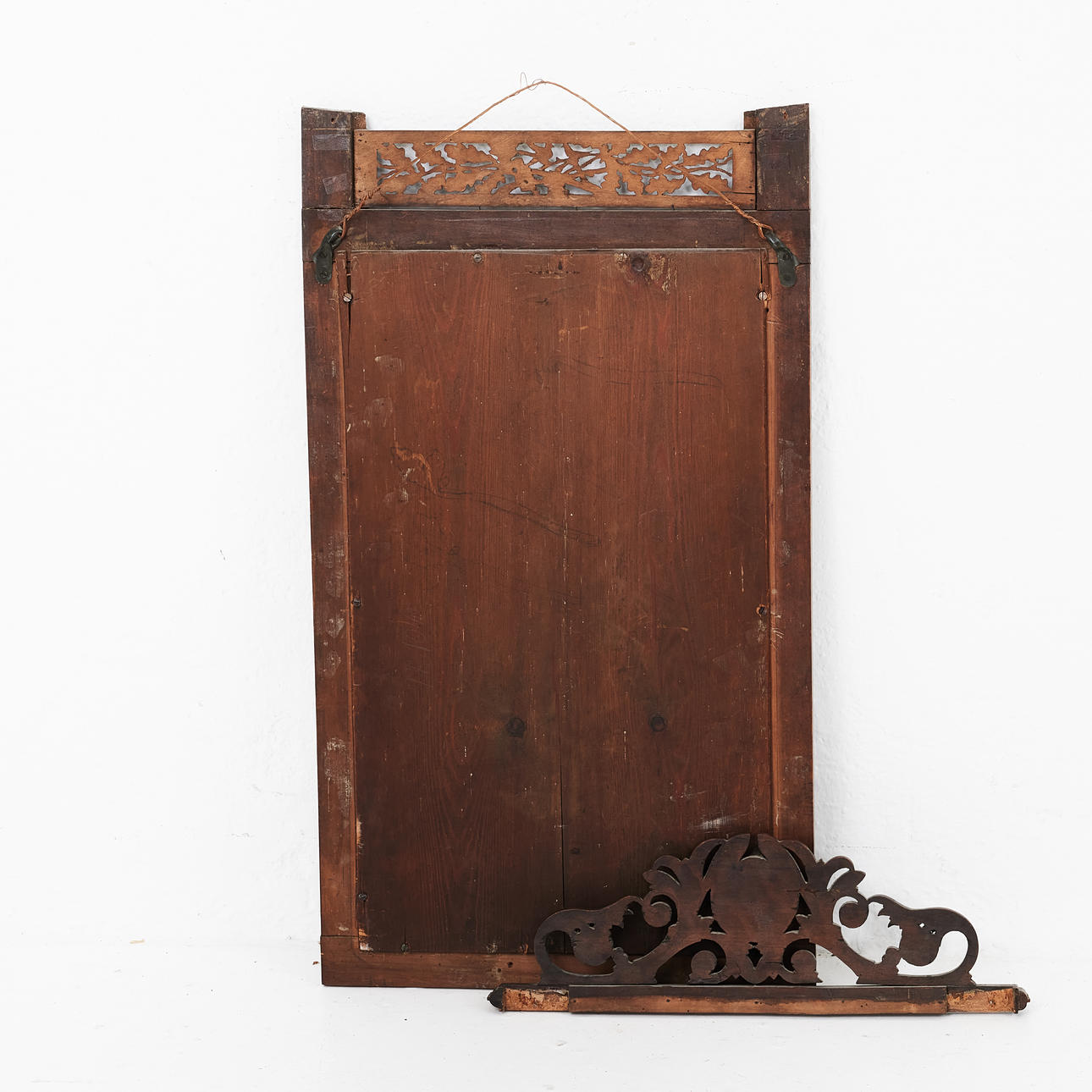 Walnut, partly cut decor with figurine scenes and leaf decor, partly pierced, height 80x41 cm.