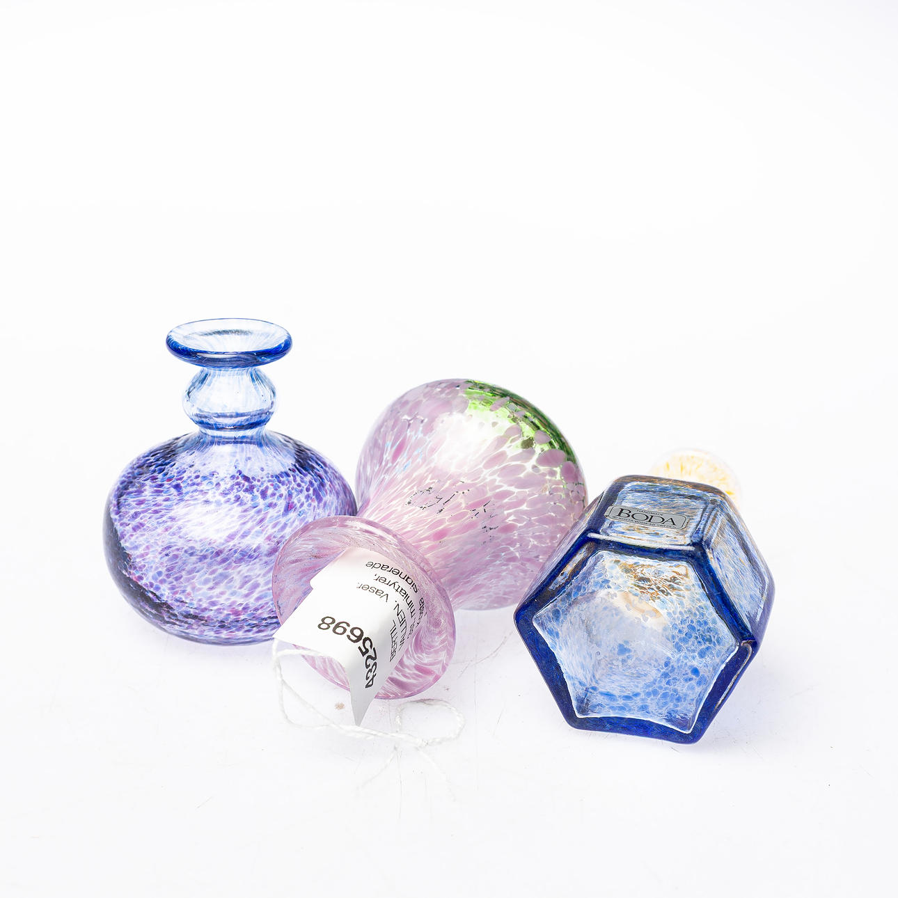 4325698. BERTIL VALLIEN. Vases, 3pcs, miniatures, Kosta, signed & numbered.