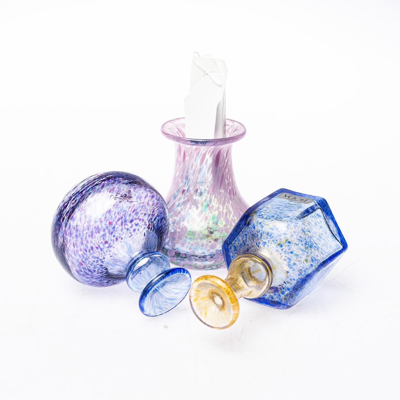 BERTIL VALLIEN. Vases, 3pcs, miniatures, Kosta, signed & numbered.