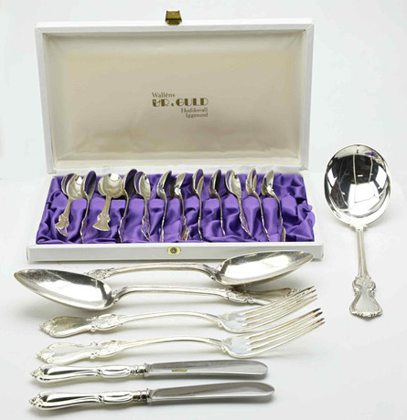 4325770. BOX, CASE AND A PAIR OF BUTTER KNIVES. ST.JAMES AND ORREFORS JERNVERK.