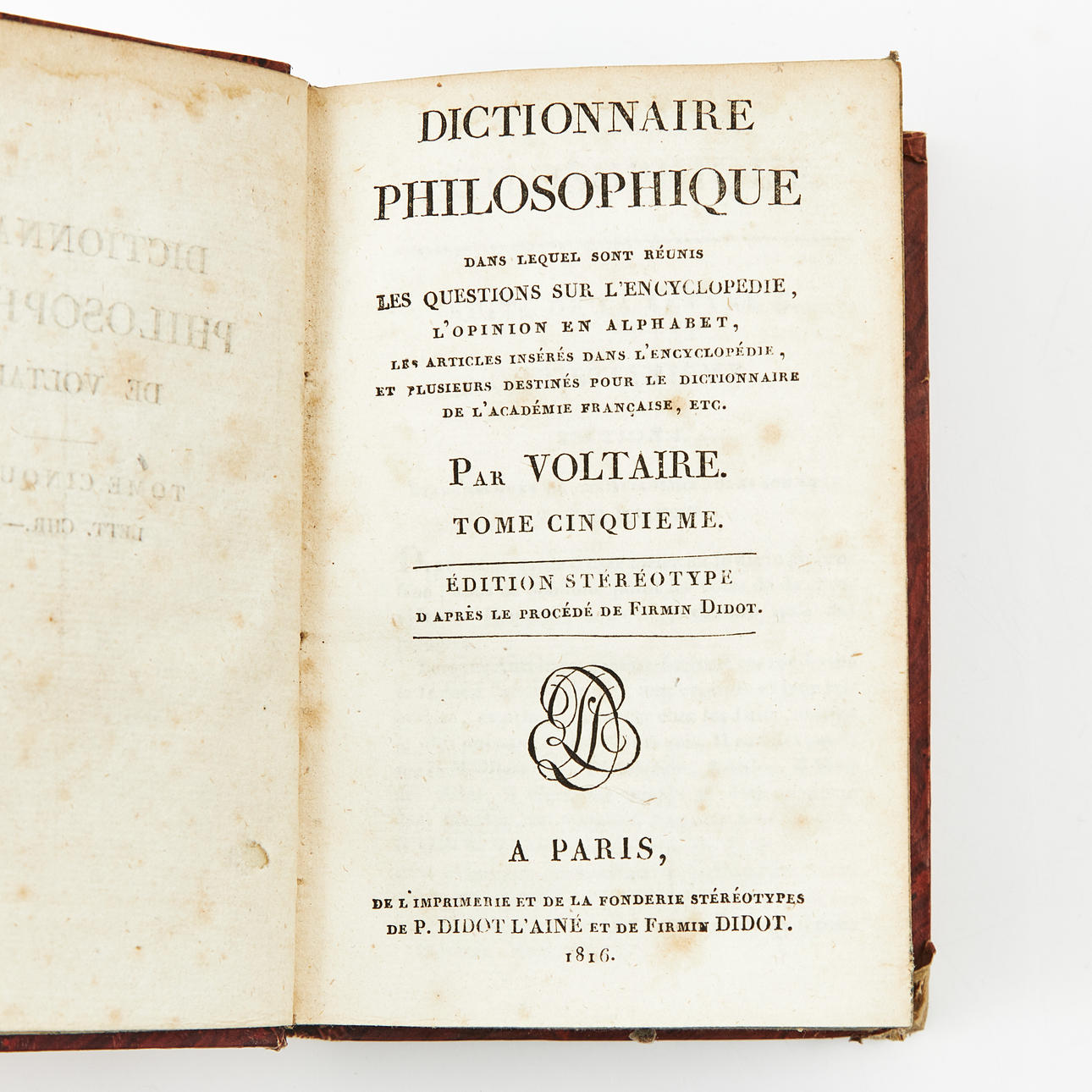 VOLTAIRE, Collection of writings, fol. a. Dictionnaire philosophique, stereotype edition, Paris 1806-1817.