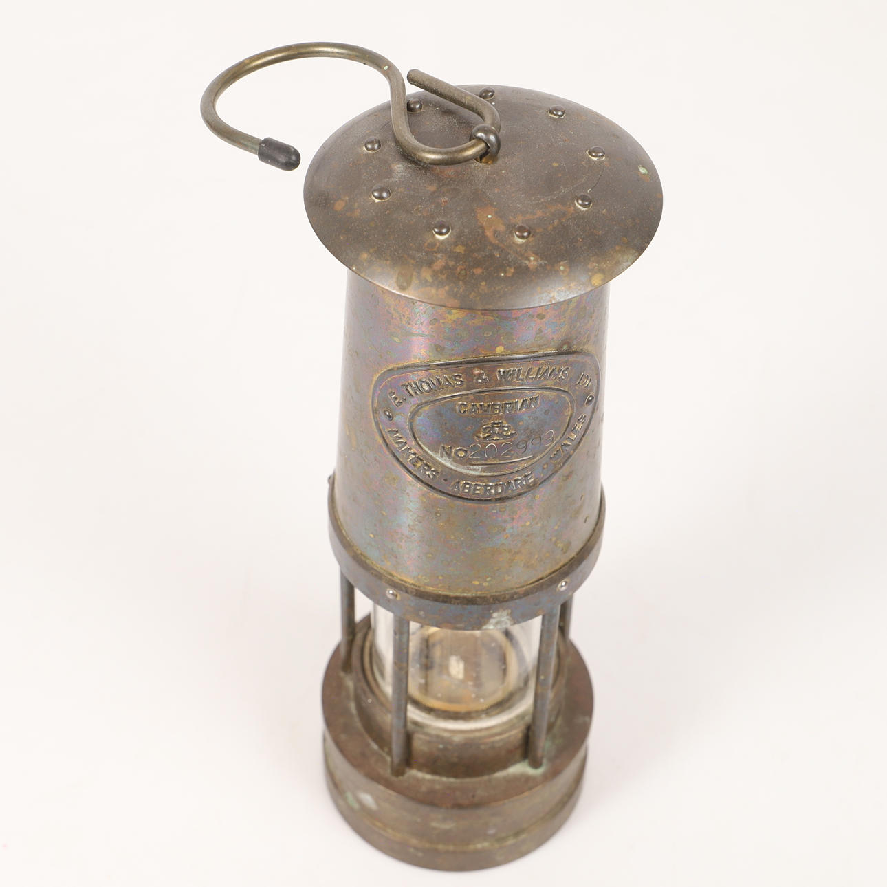 4326540. BRASS/GLASS MINING LANTERN, Thomas & Williams, Wales.