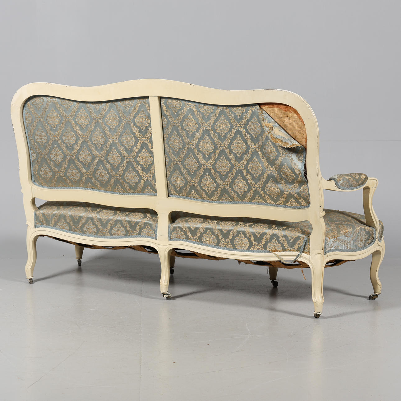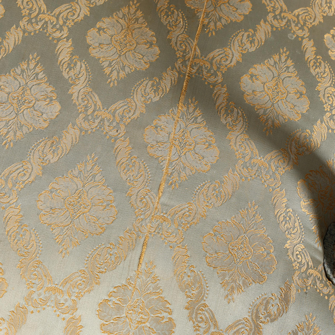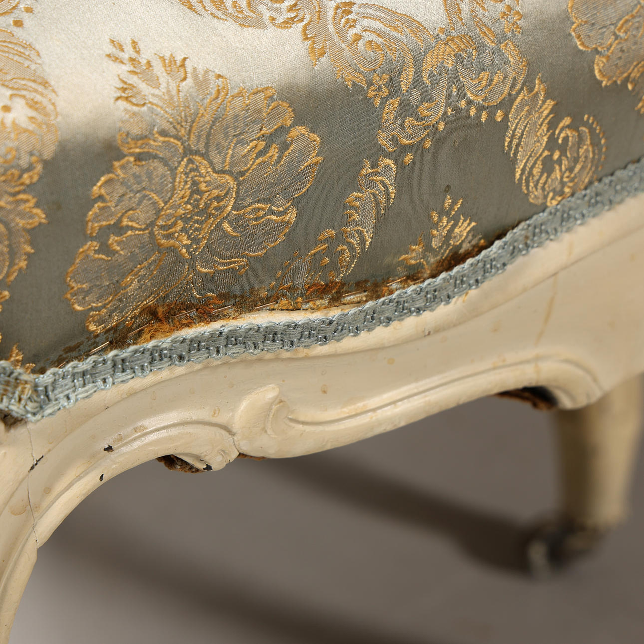 Normal wear and tear, loose edge bands, loose pieces of fabric, strong smoke smell.