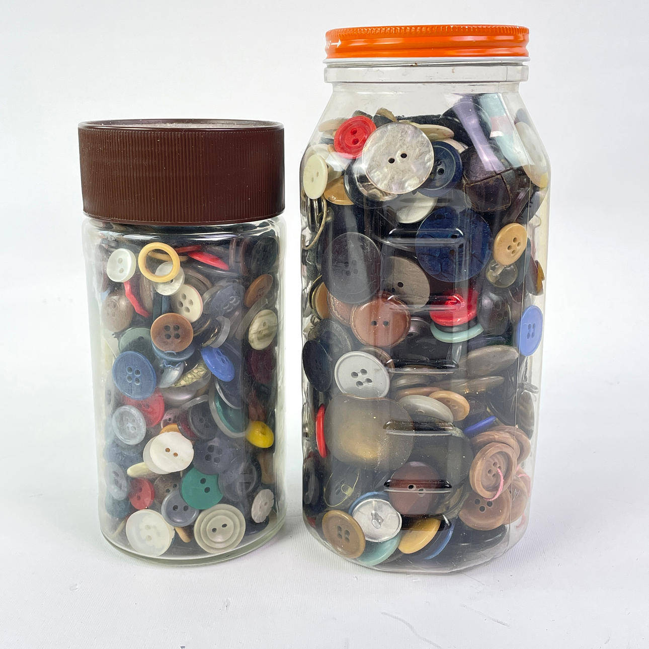 3 cans with assorted buttons.