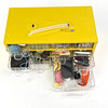 A yellow box in sheet metal with 10 plastic drawers, with assorted. Dimensions approx. 30 x 16 x 14 cm.