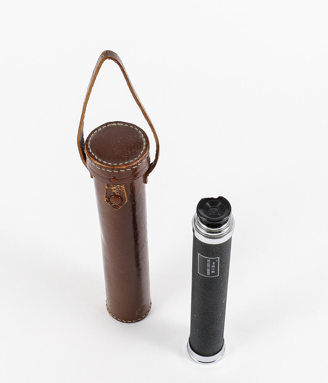 TUBE BINOCULARS in leather case.