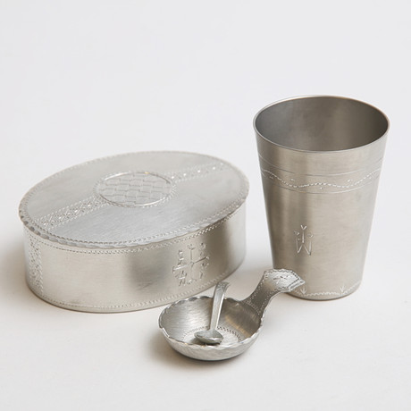 1 pewter case, stamped “Handlework Jokkmokk” and annual stamp “N10".