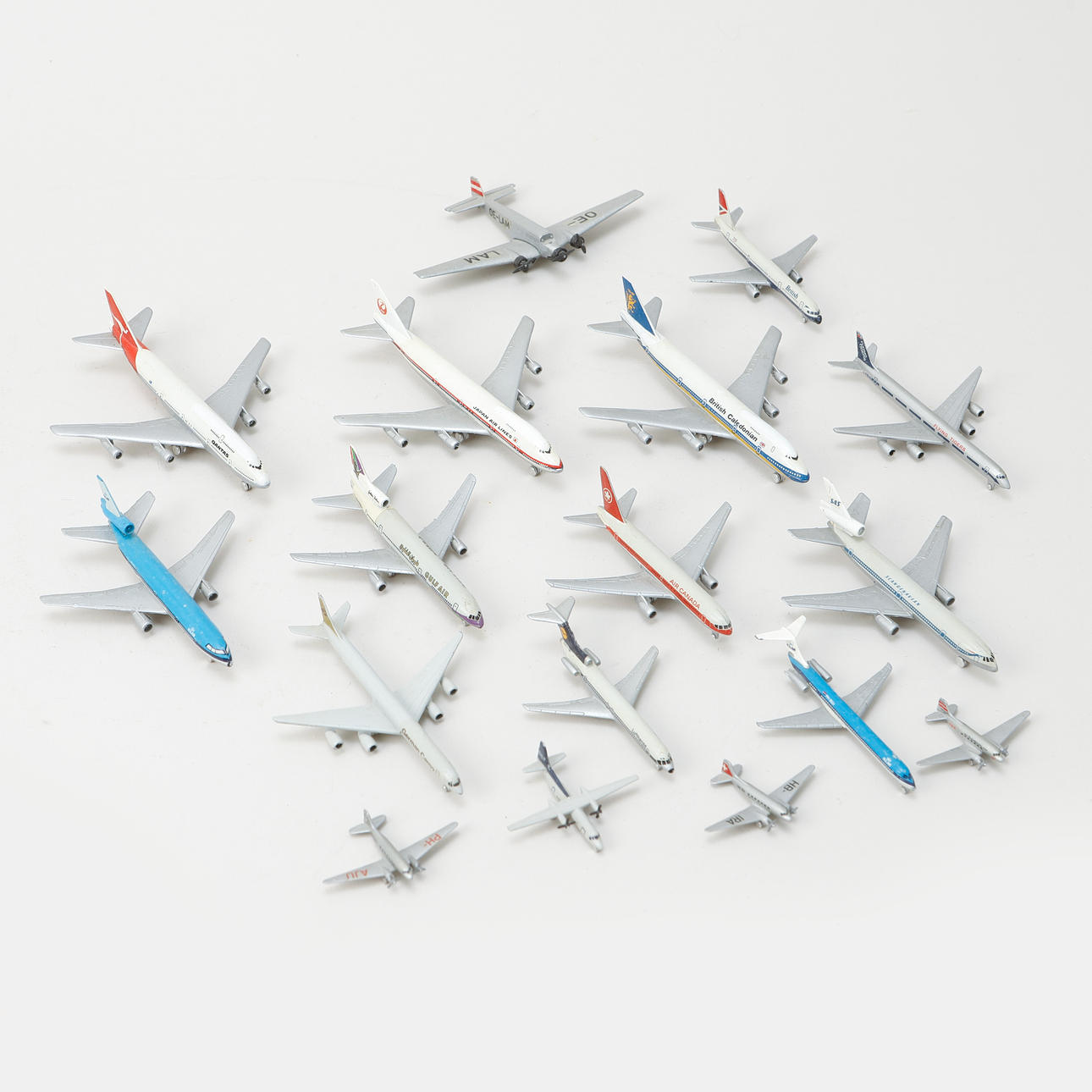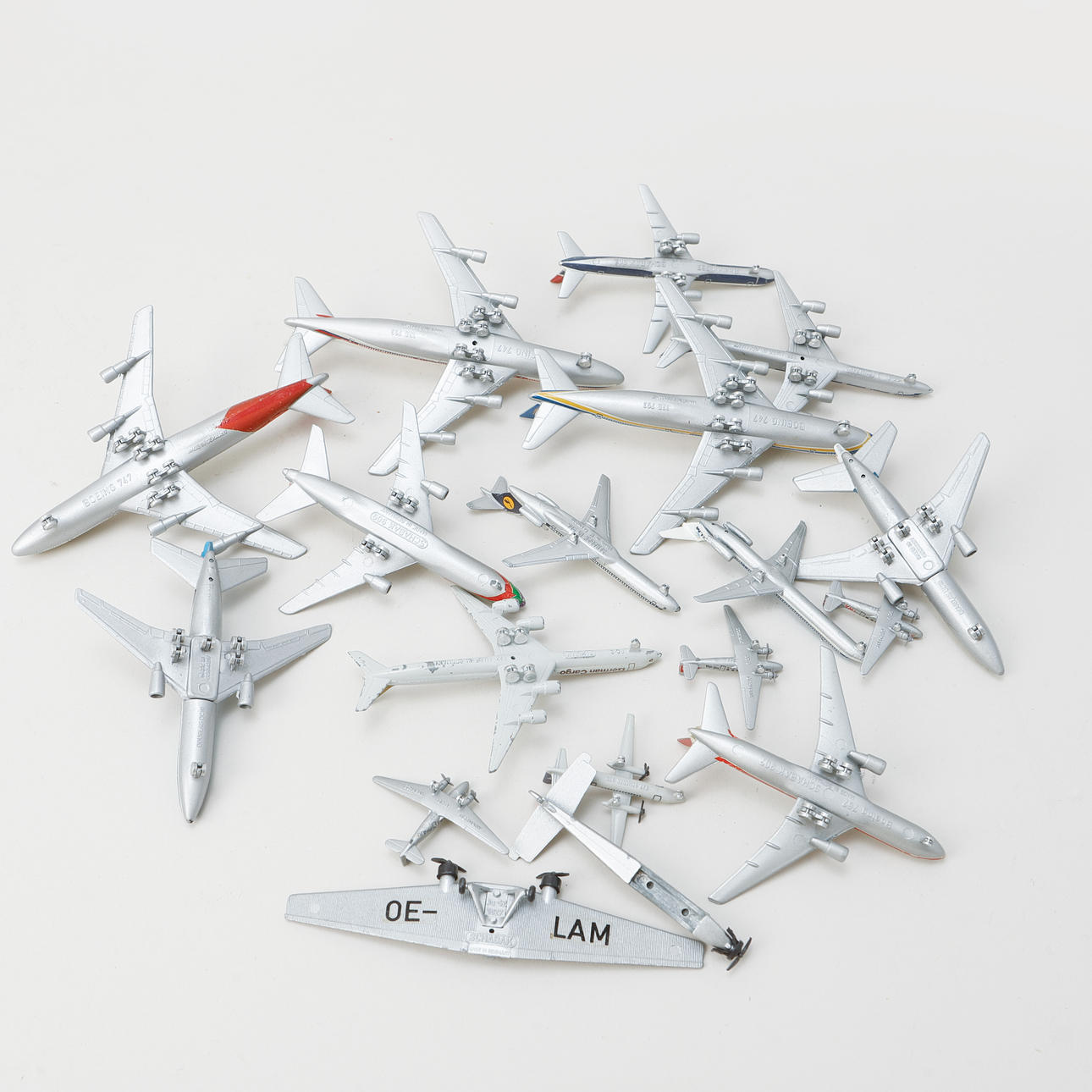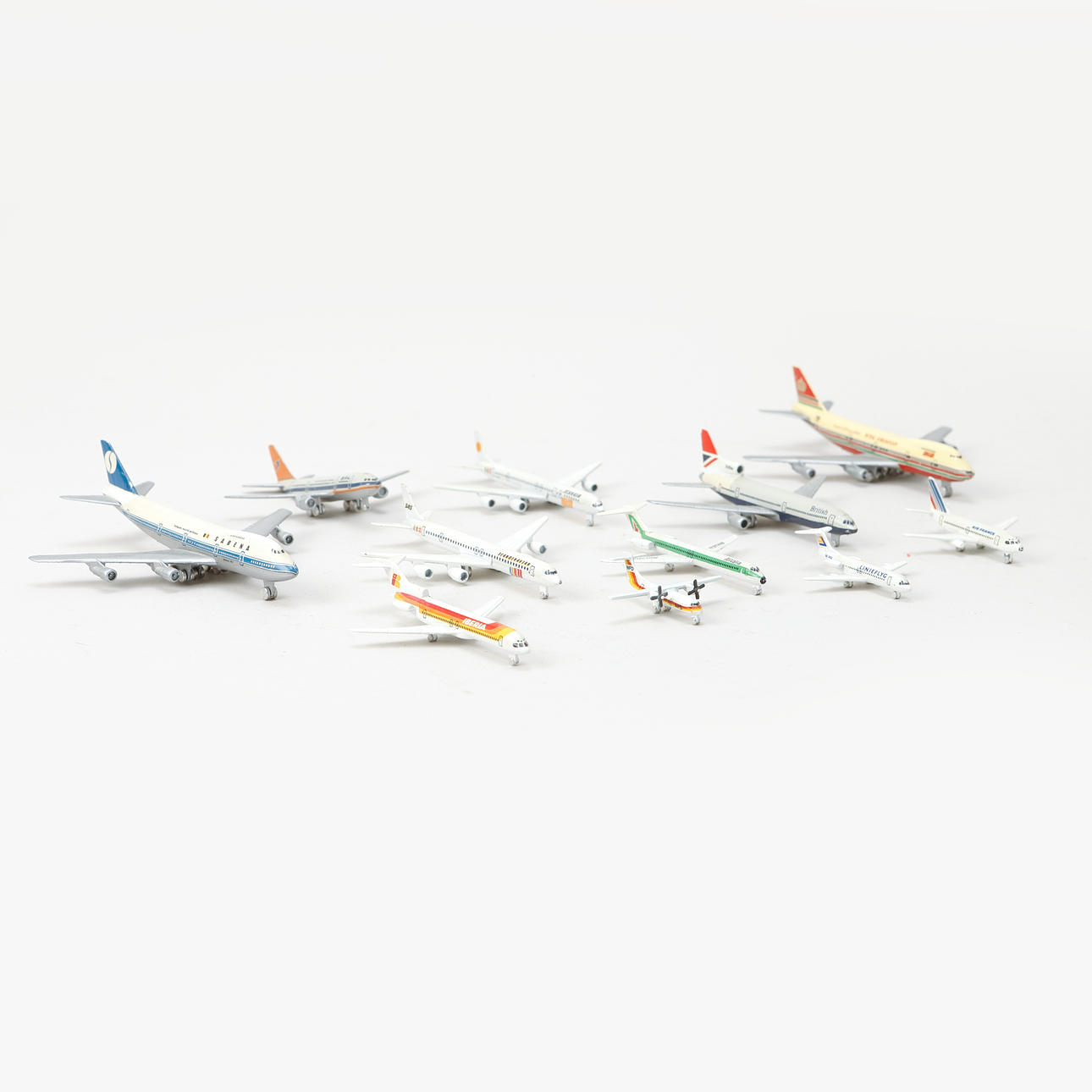 Metal and plastic. Different airlines and models. Length 3 - 12 cm.