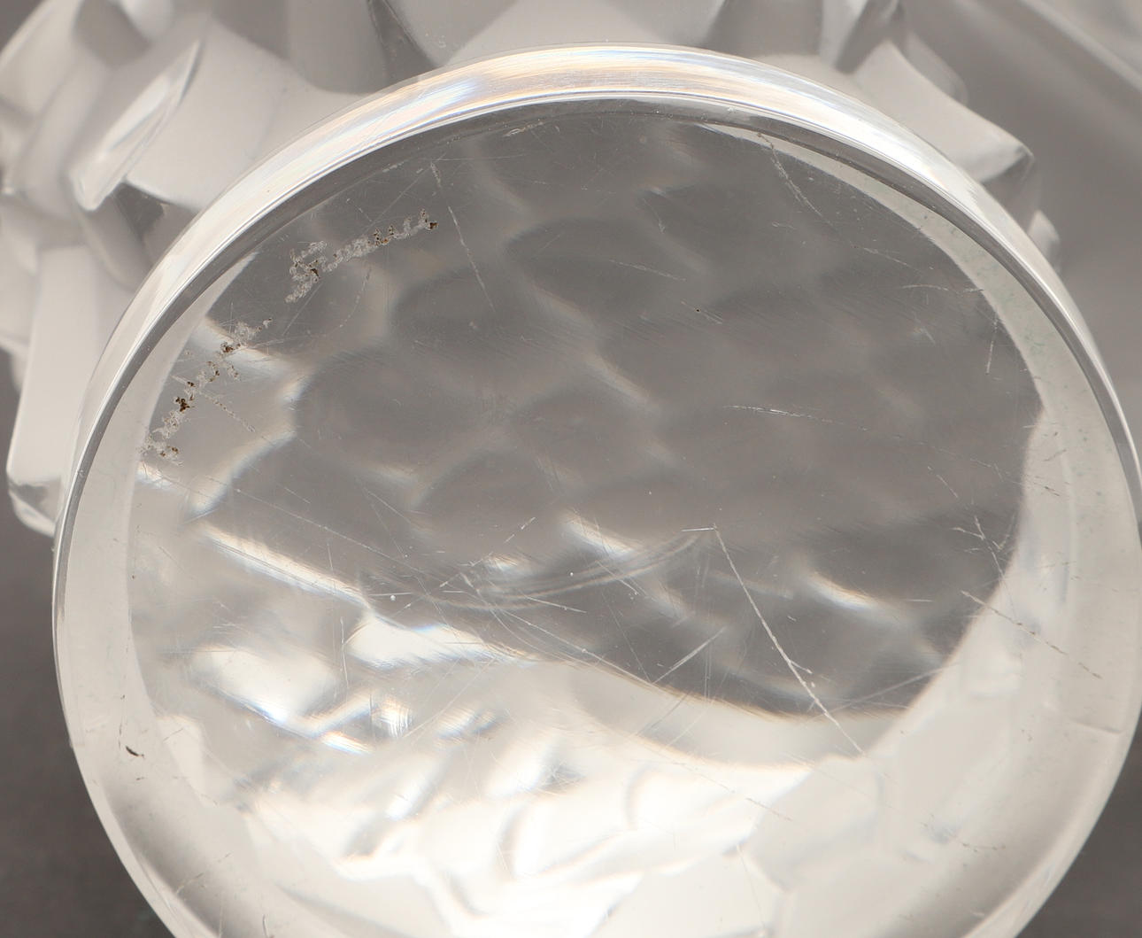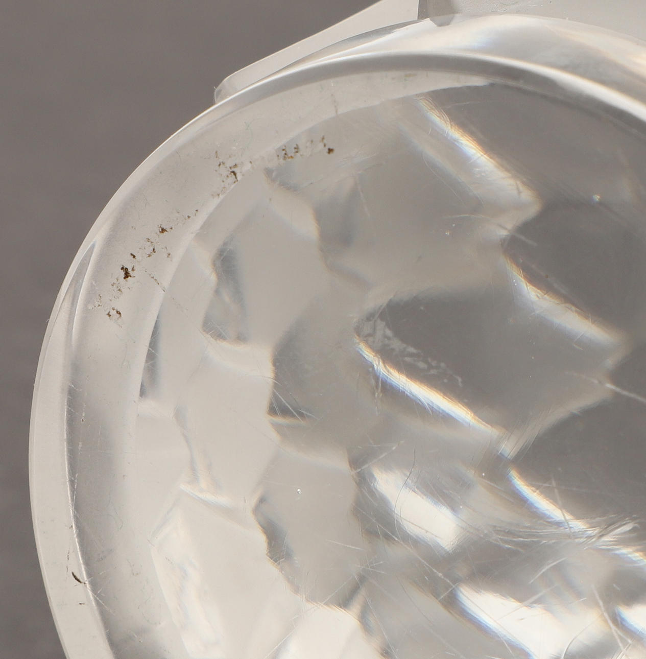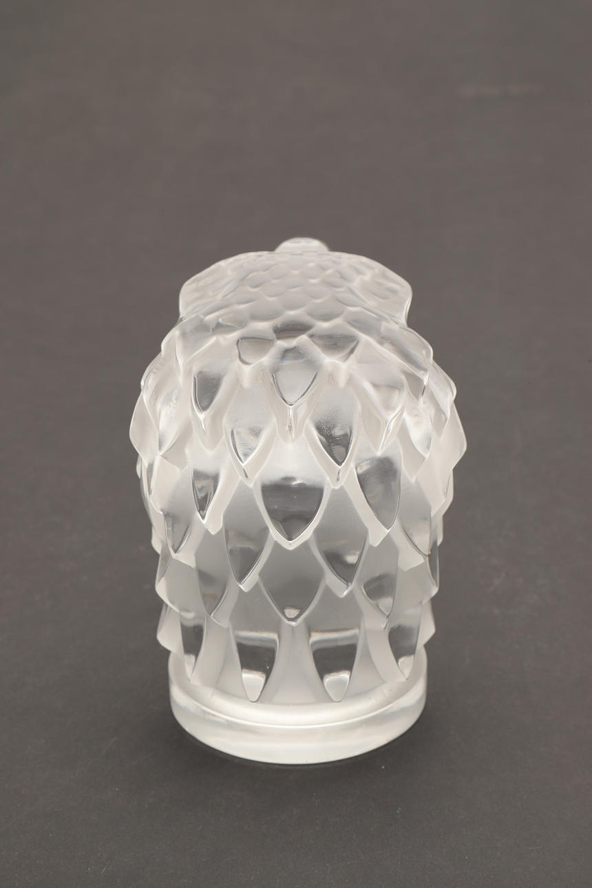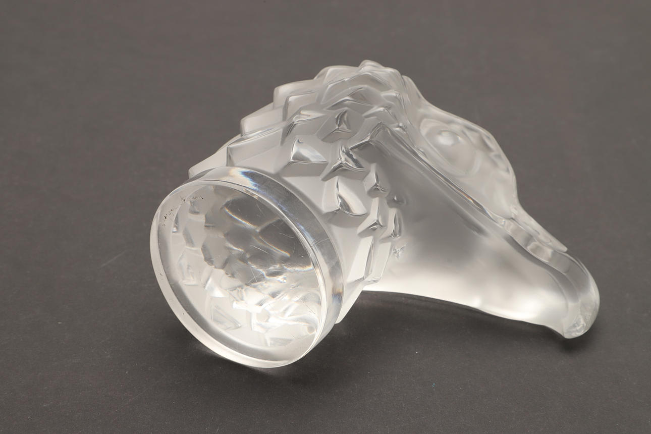 A Lalique frosted glass car mascot in the form of an Eagle's head. Etched marks to the base, 'Lalique, France'. 11cms high.