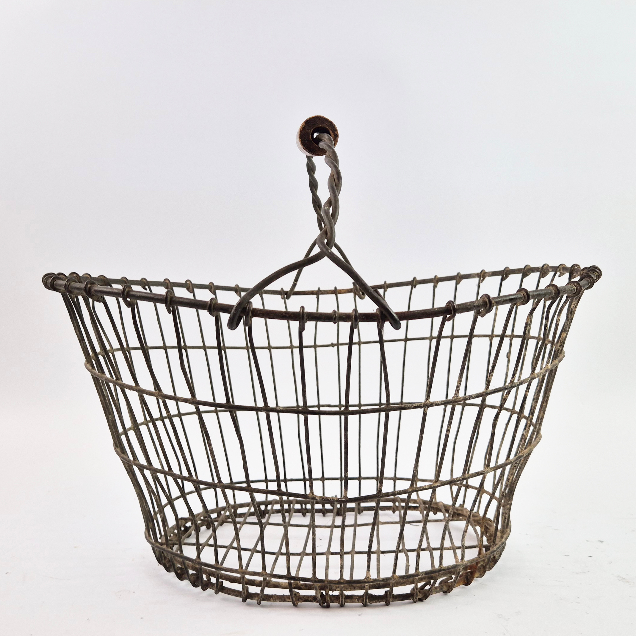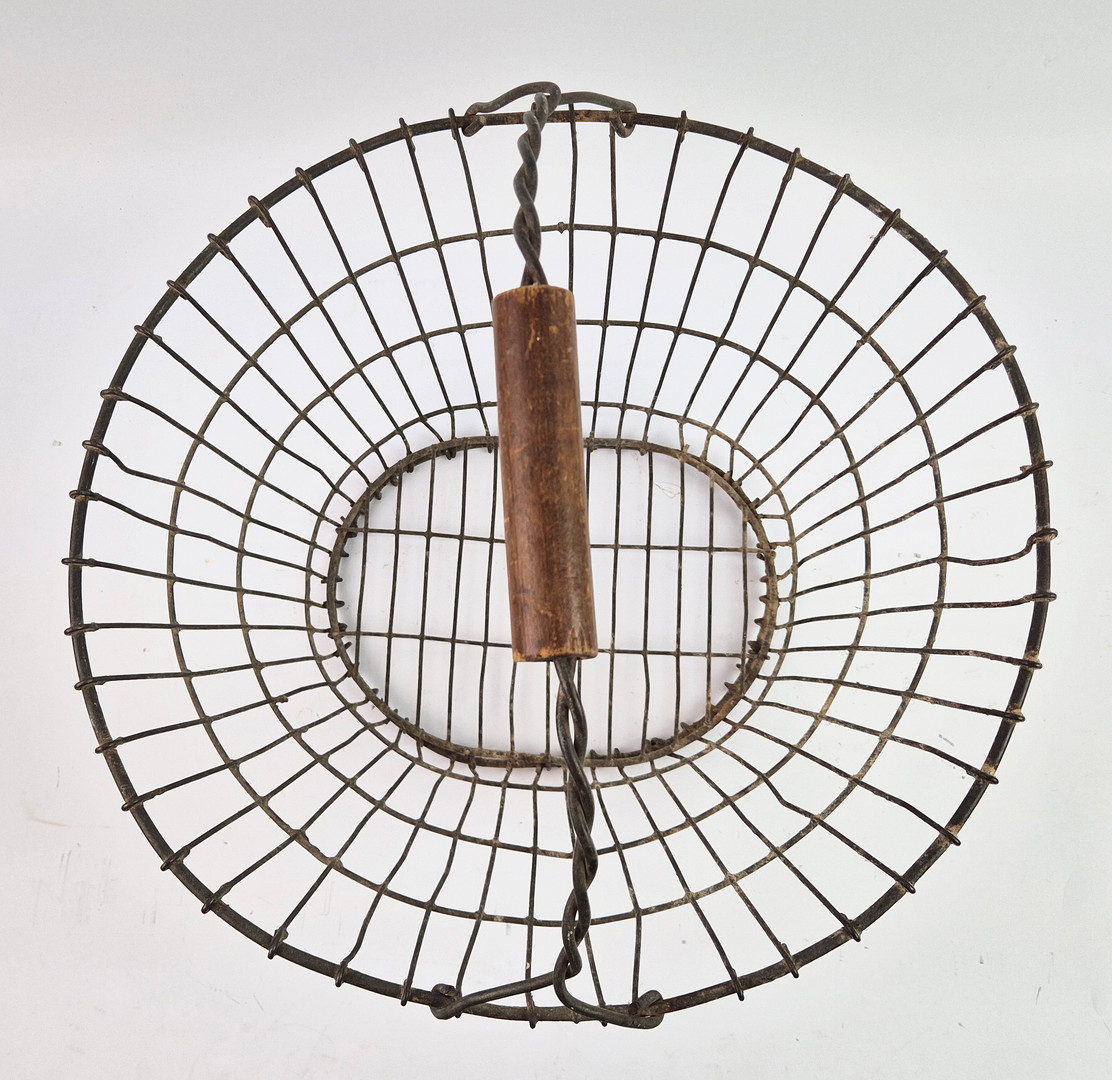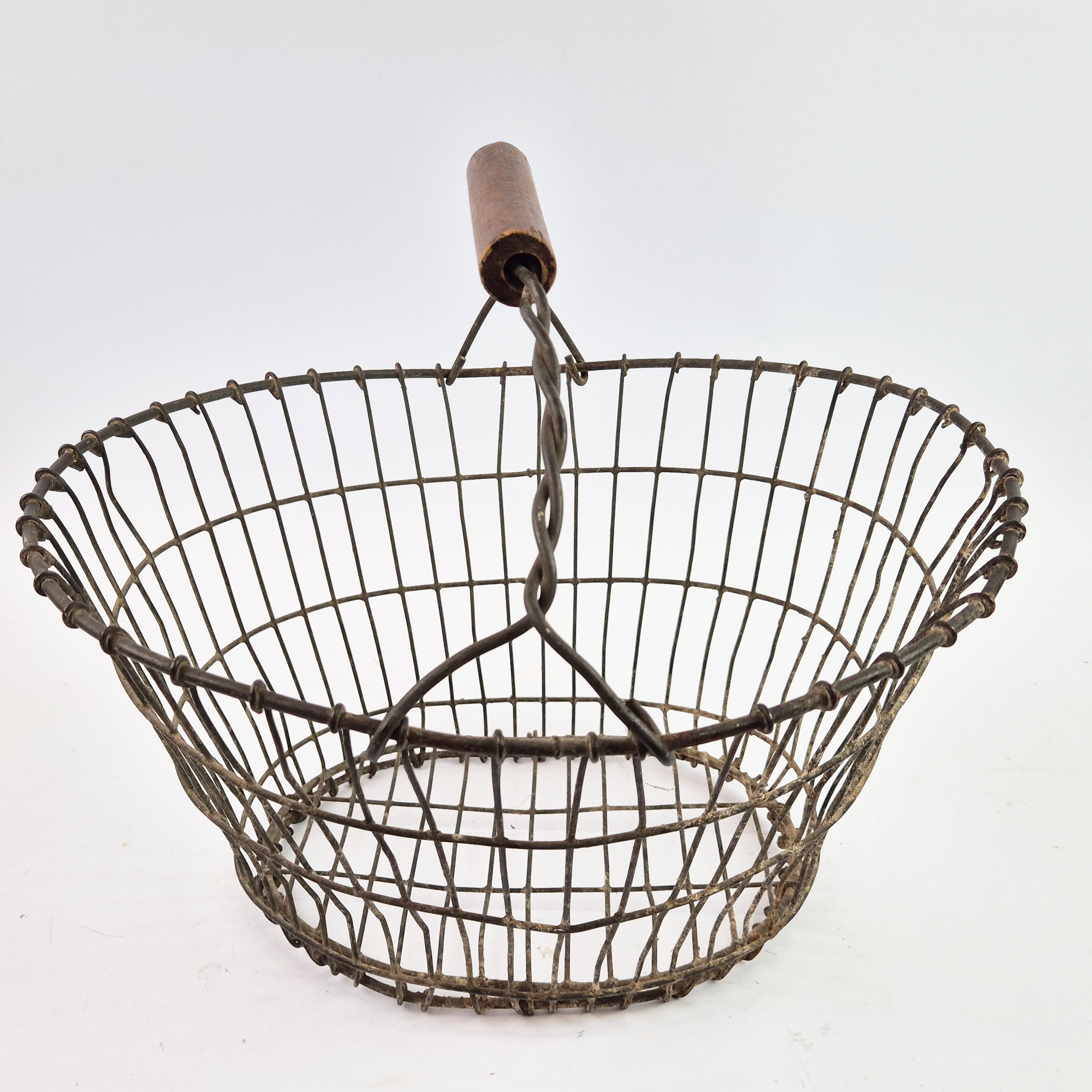 4328523. AN ANTIQUE WIRE EGG BASKET.