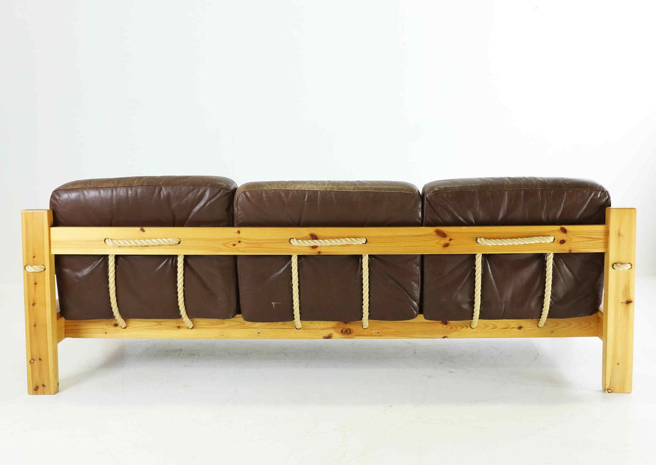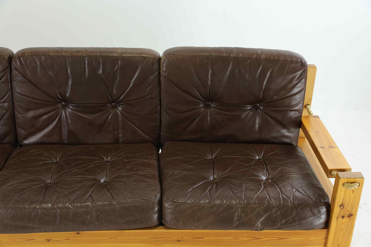 4328647. A 3-seater sofa, pine and leather, 1970s.